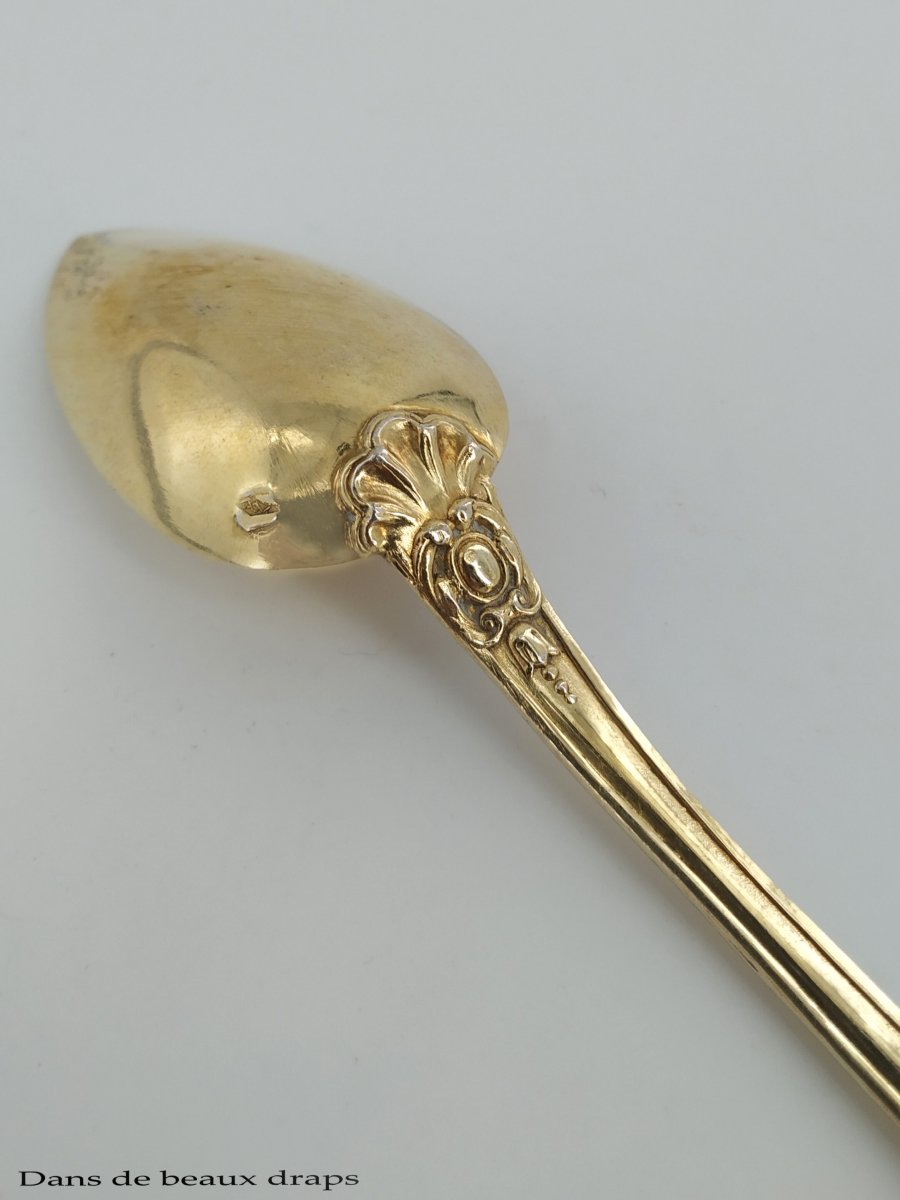 10 jolies cuillères à thé en vermeil, XIXème.