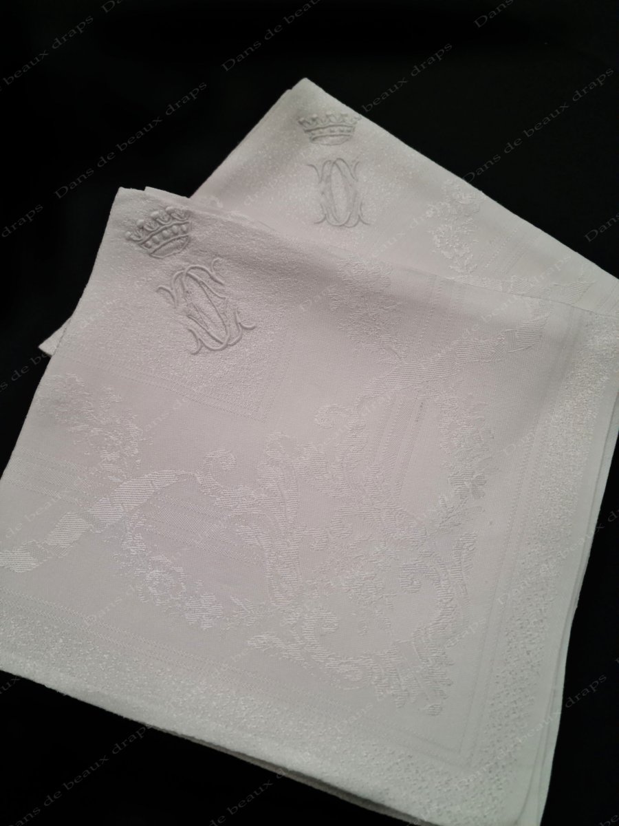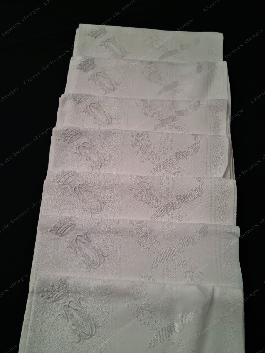 7 serviettes de table en damassé,monogramme CC,couronne de baron.
