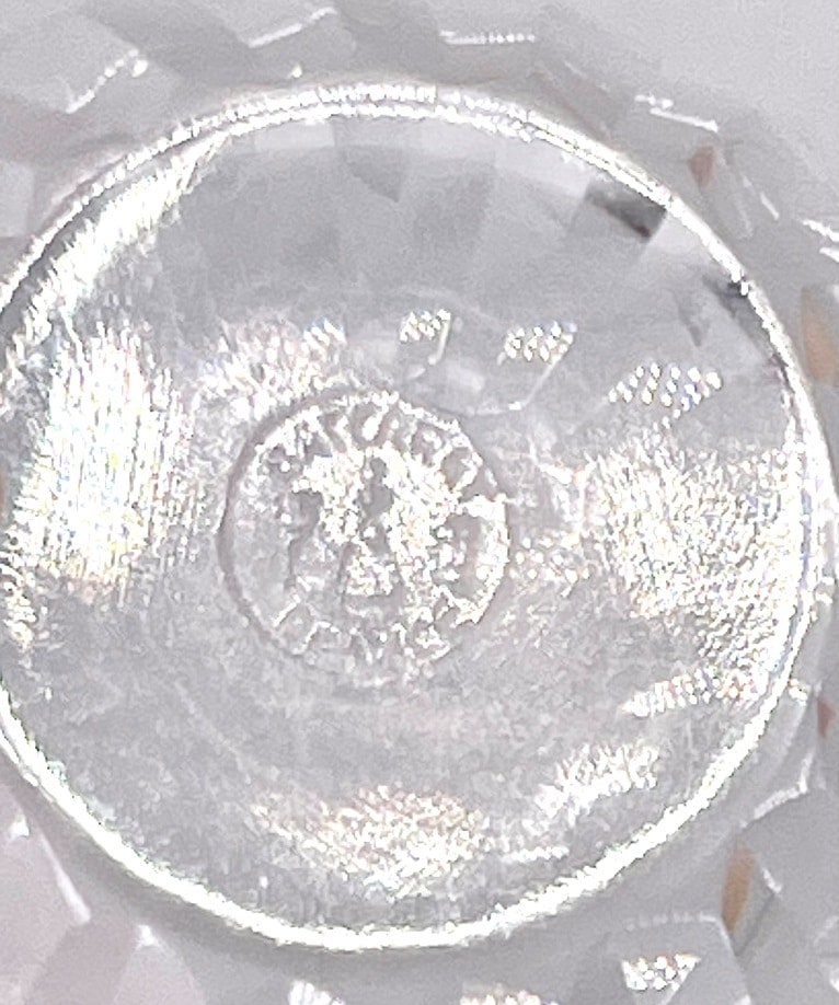 En cristal taillé en profonds biseaux en jeux d’orgues.