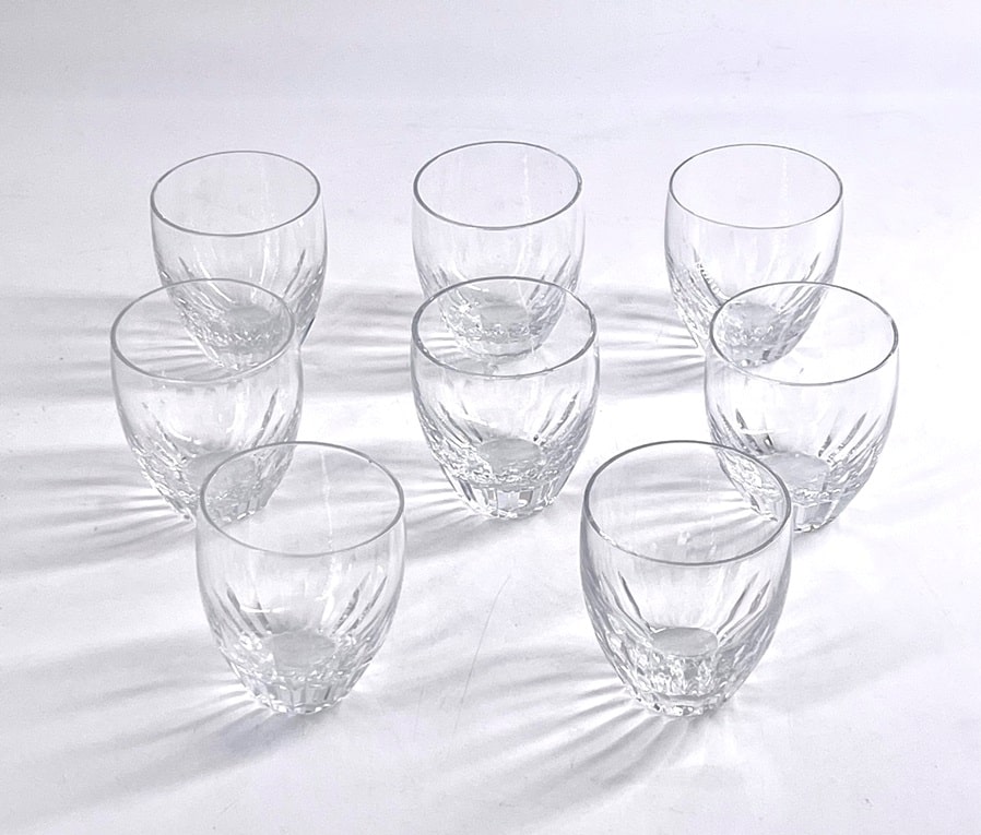Amusante suite de 8 mini gobelets à liqueur en cristal de Baccarat modèle Massena.