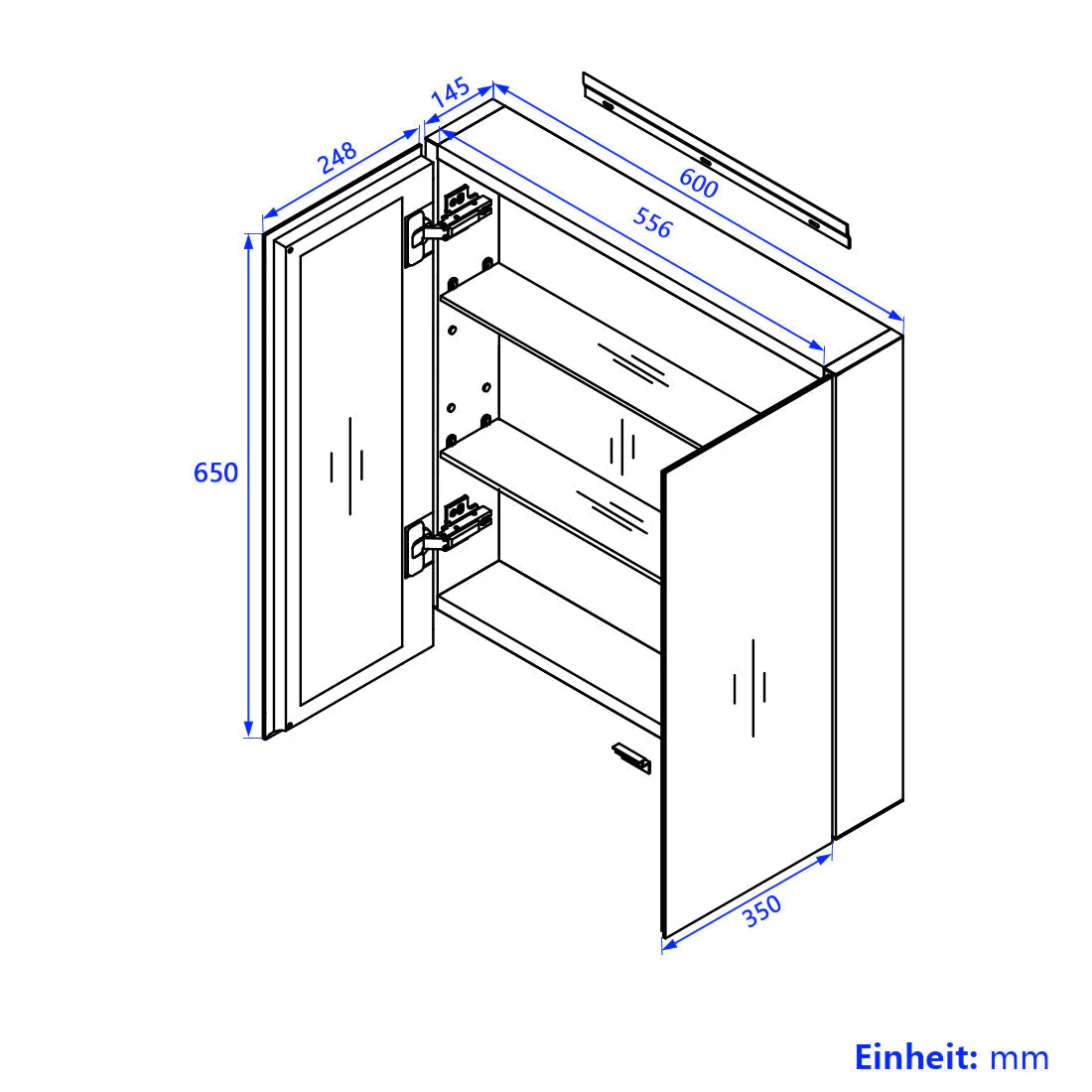 - Installation facile : l’armoire murale est livrée pré-assemblée et peut être installée en peu de temps, même sans connaissances spécialisées. Un kit de montage pour la fixation et des instructions de montage complètes sont inclus.