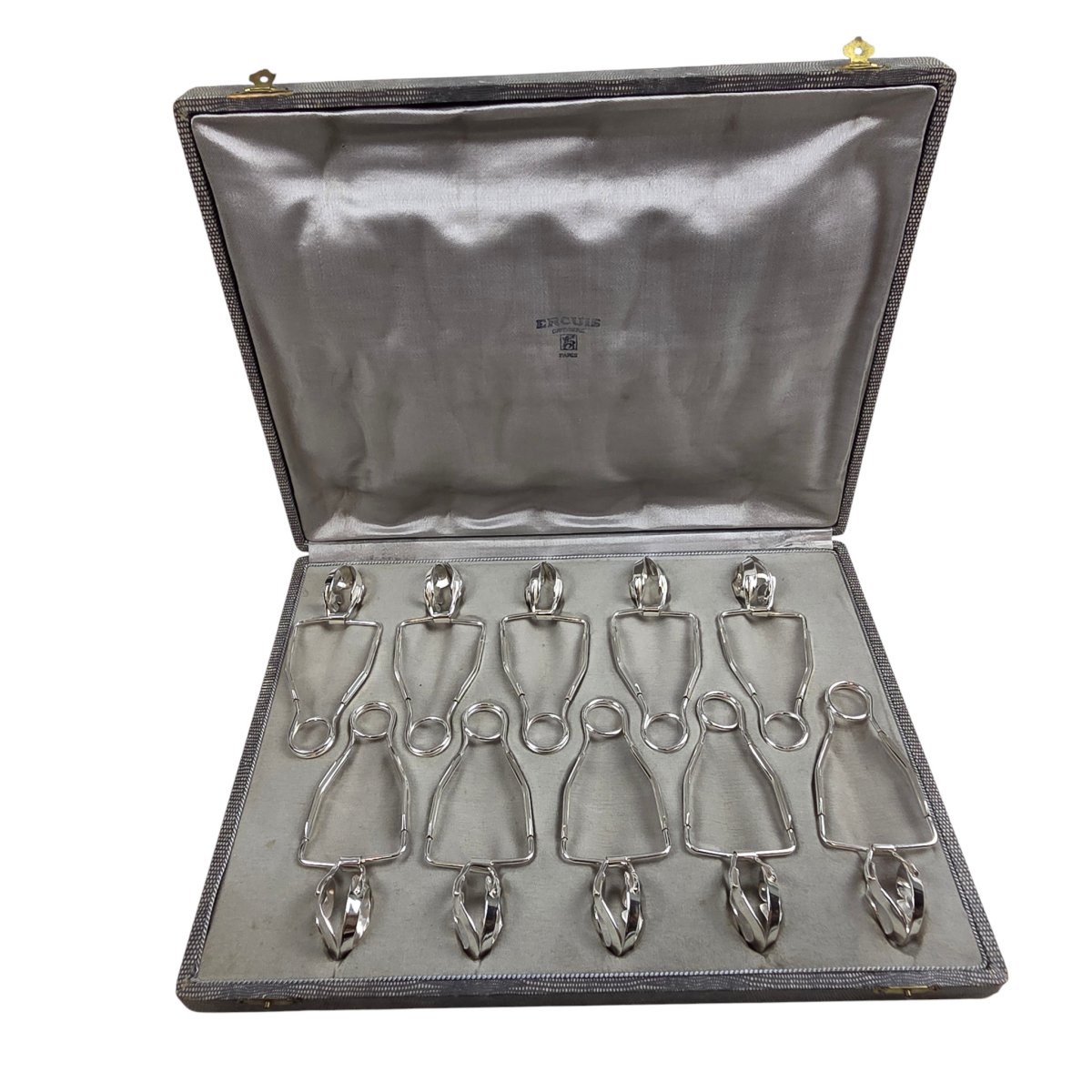 Bel ensemble de 12 pinces à escargot en métal argenté, orfèvre Ercuis.