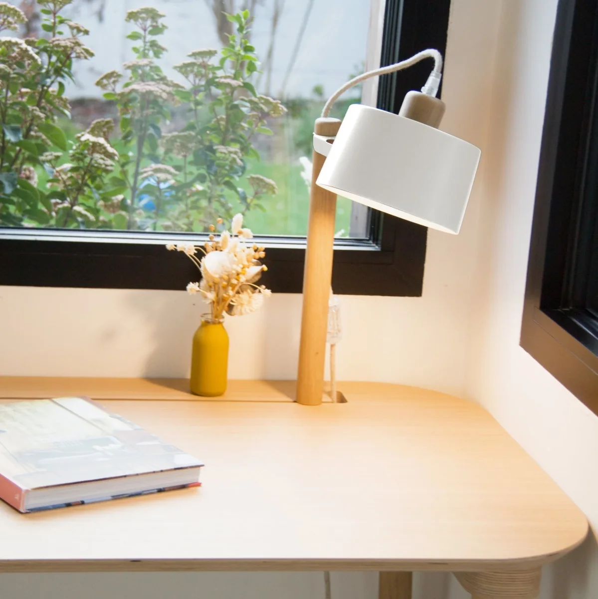 Le bureau & lampe by Camille est design & éco-responsable. Il a été pensé dans une démarche d’éco-conception, avec des matériaux de qualité et notamment des bois issus de forêts gérées durablement. Il comprend les éléments essentiels d’un lieu de travail confortable et se distingue par sa simplicité ; ses formes arrondies sublime le plateau de chêne. Il possède une lampe orientable pour illuminer vos idées et libre à vous de la fixer où vous le souhaitez grâce à la rainure du plateau. Une allure douce et distinguée pour vous aider à travailler dans les meilleures conditions possibles !