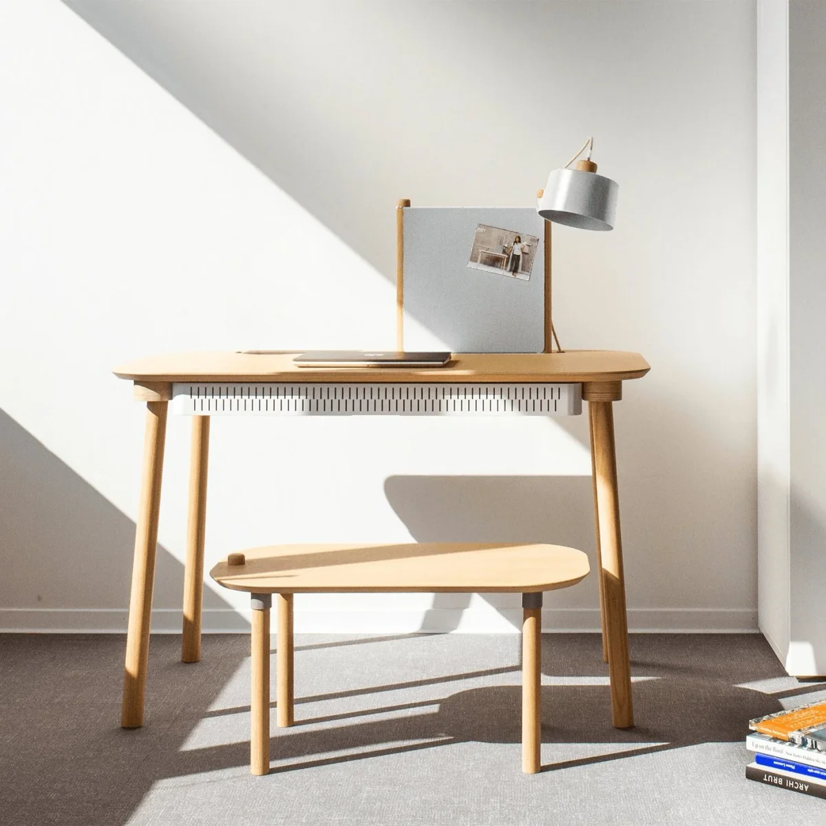 Le bureau, tiroir, séparateur & lampe by Eléonore est design & éco-responsable. Il a été pensé dans une démarche d’éco-conception, avec des matériaux de qualité et notamment des bois issus de forêts gérées durablement. Il intègre tous les éléments essentiels pour travailler confortablement, avec son tiroir divisé en deux compartiments : idéal pour ranger vos dossiers ! La lampe intégrée est orientable et illuminera vos idées. Sans oublier le séparateur en métal afin d’aimanter vos pense-bêtes… ou vos photos. Le bureau se distingue par sa simplicité ; ses formes arrondies sublime le plateau de chêne. Une allure douce et distinguée pour vous aider à travailler dans les meilleures conditions !
