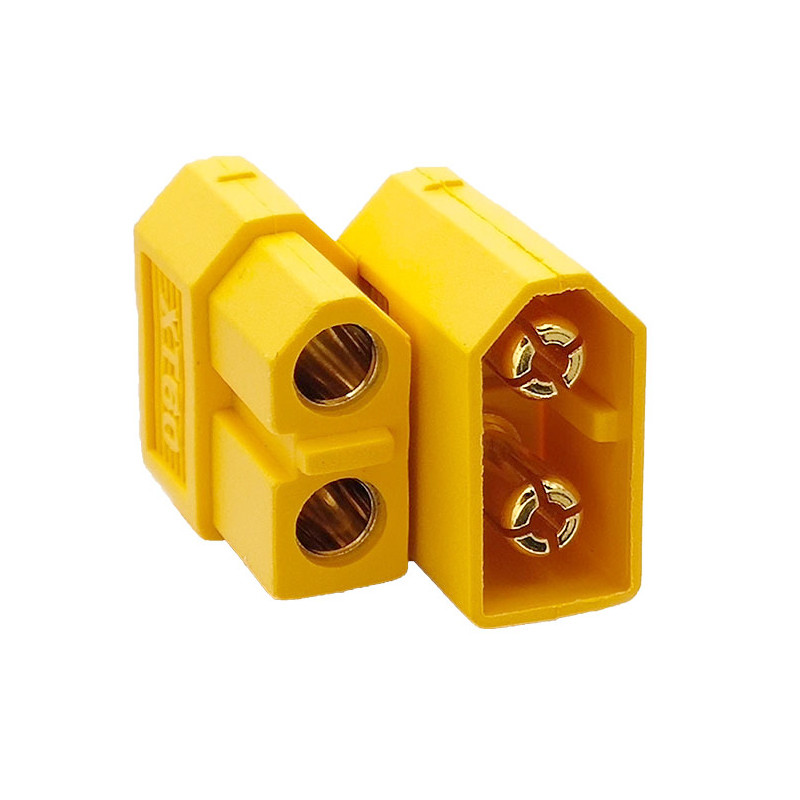 Le connecteur XT60 est de forme cylindrique, avec des contacts mâles et femelles. Il est facile à connecter et à déconnecter grâce à son système de verrouillage par pression, ce qui garantit une connexion sécurisée. Il est également doté d’une conception anti-étincelles, ce qui le rend sûr à utiliser même lors de la connexion ou de la déconnexion sous charge.