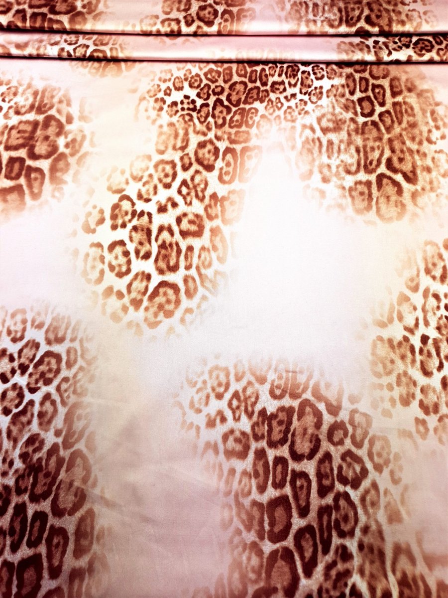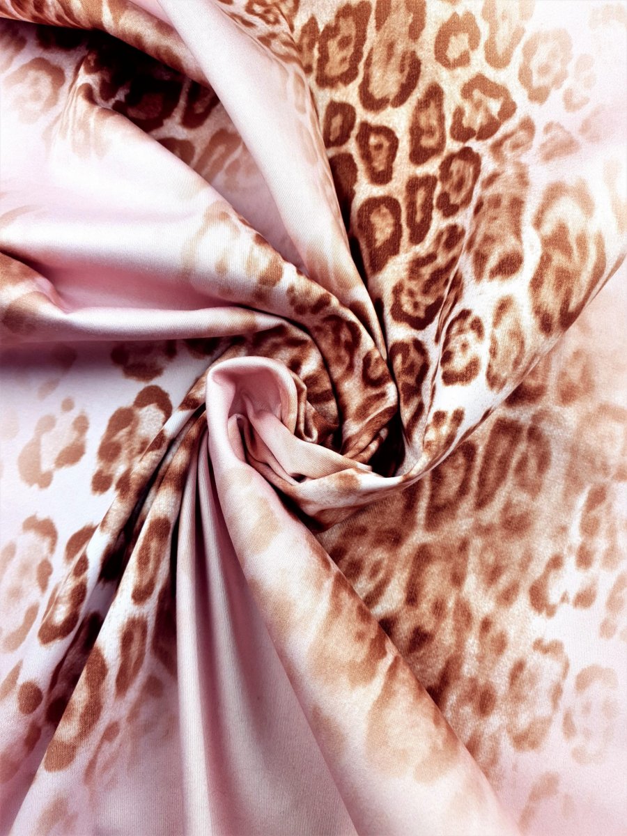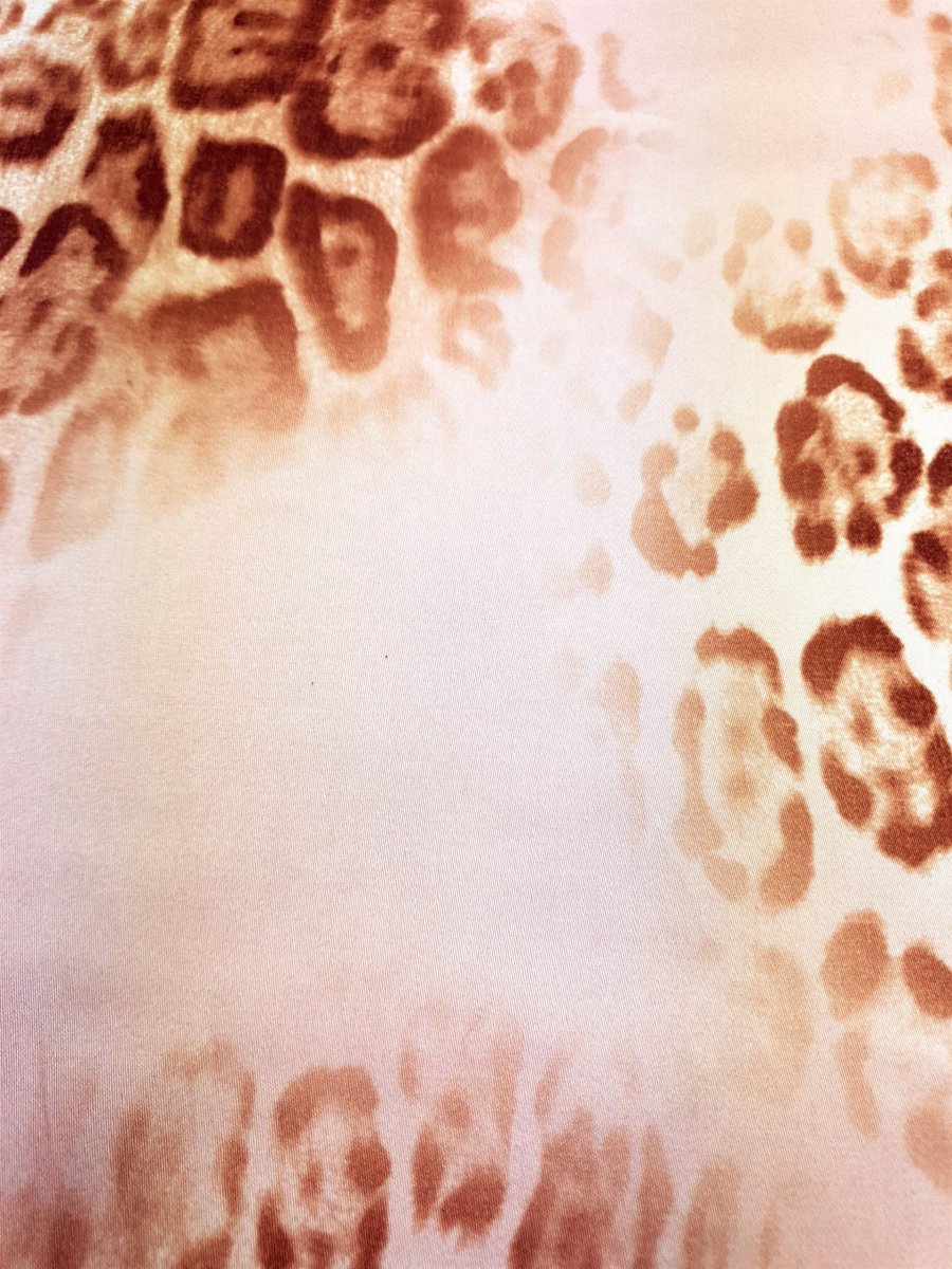 Satin de coton stretch imprimé léopard rose. Matière qui se tient, lisse, très agréable à porter, légèrement satinée et opaque. Il sera parfait pour la mi-saison et l’été.
