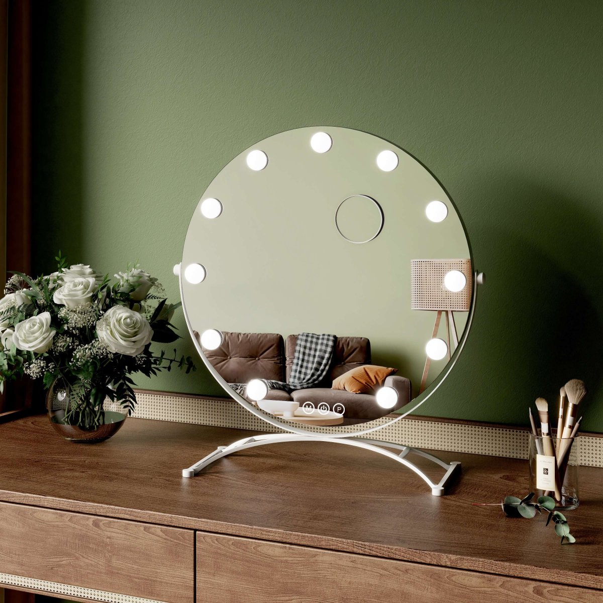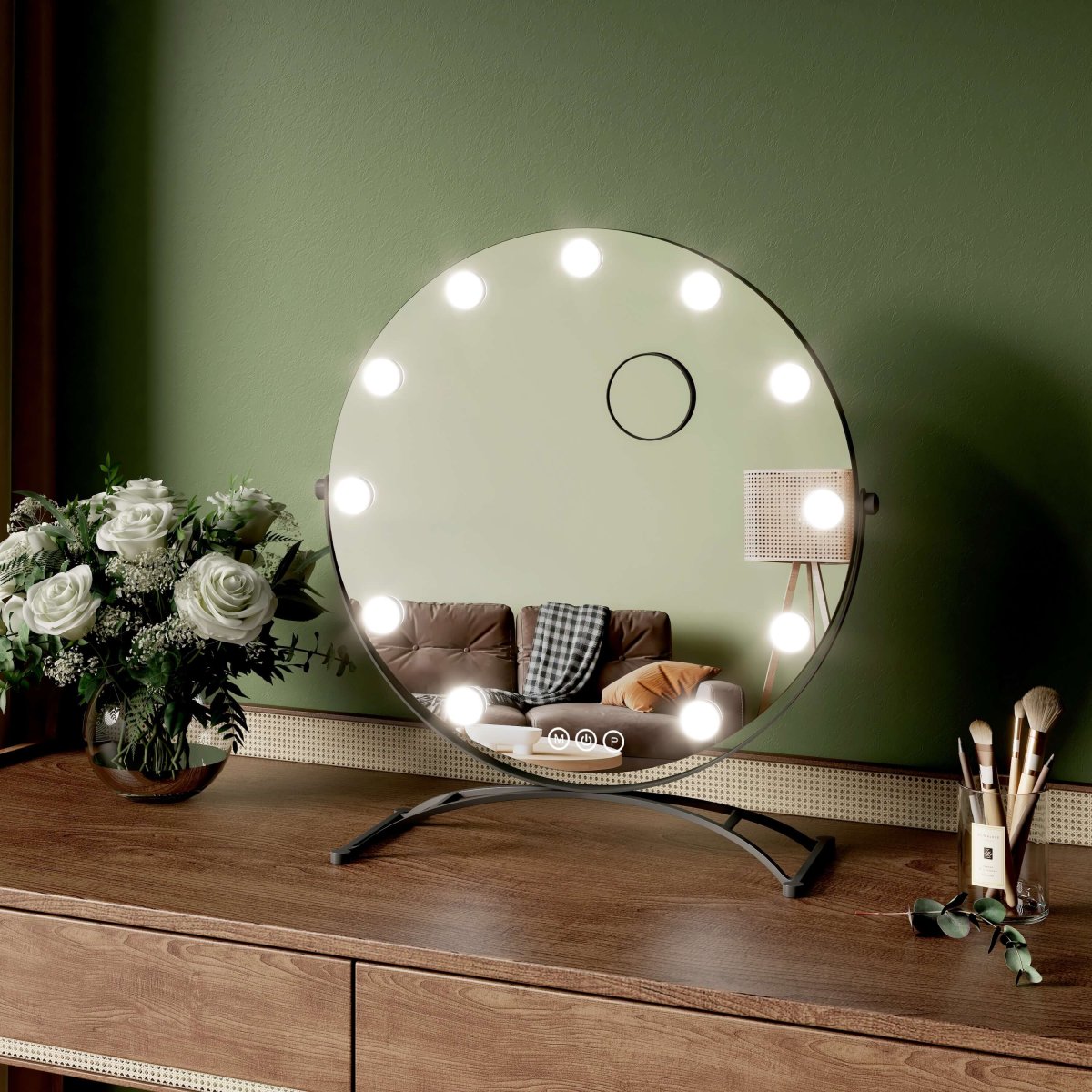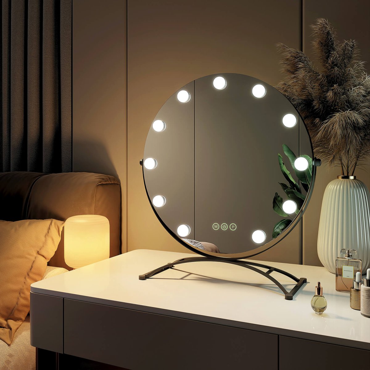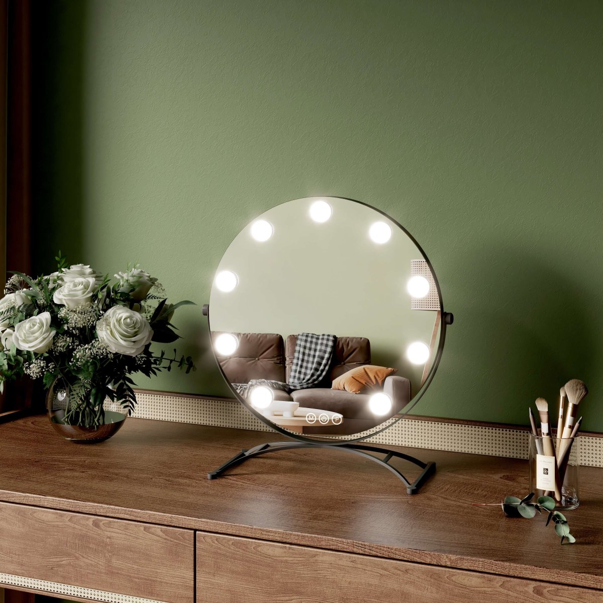 - Miroir HD : miroir HD avec un CRI supérieur à 90, le reflet ne sera ni déformé ni déformé. Avec les petites ampoules (9 ou 11) sur le miroir, vous voyez plus clairement les détails de votre visage. Parfait pour les soins quotidiens de la peau, le maquillage, le coiffage, etc.
