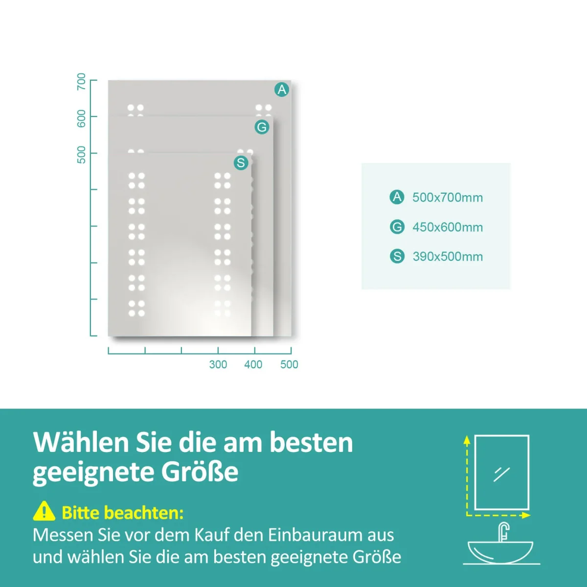 - Dimensions : Le miroir est disponible en trois tailles : 50x70cm, 45x60cm et 39x50cm.