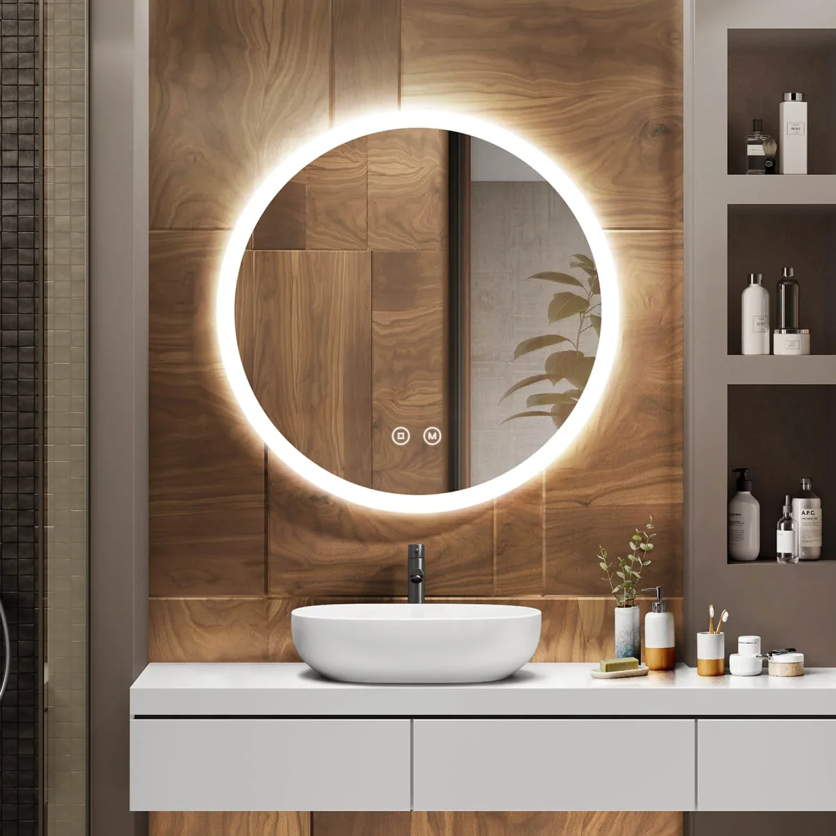 EMKE OLM01 Miroir de salle de bain à éclairage LED, rond, antibuée, 3000/4000/6500K