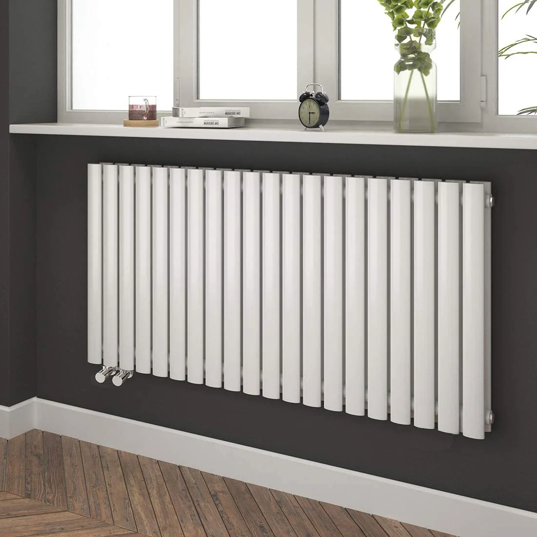 • Description de l’article : Radiateur élégant à double couche pour montage mural horizontal. Disponible en deux couleurs (anthracite ou blanc). Convient aux pièces jusqu’à 10 à 17 m².