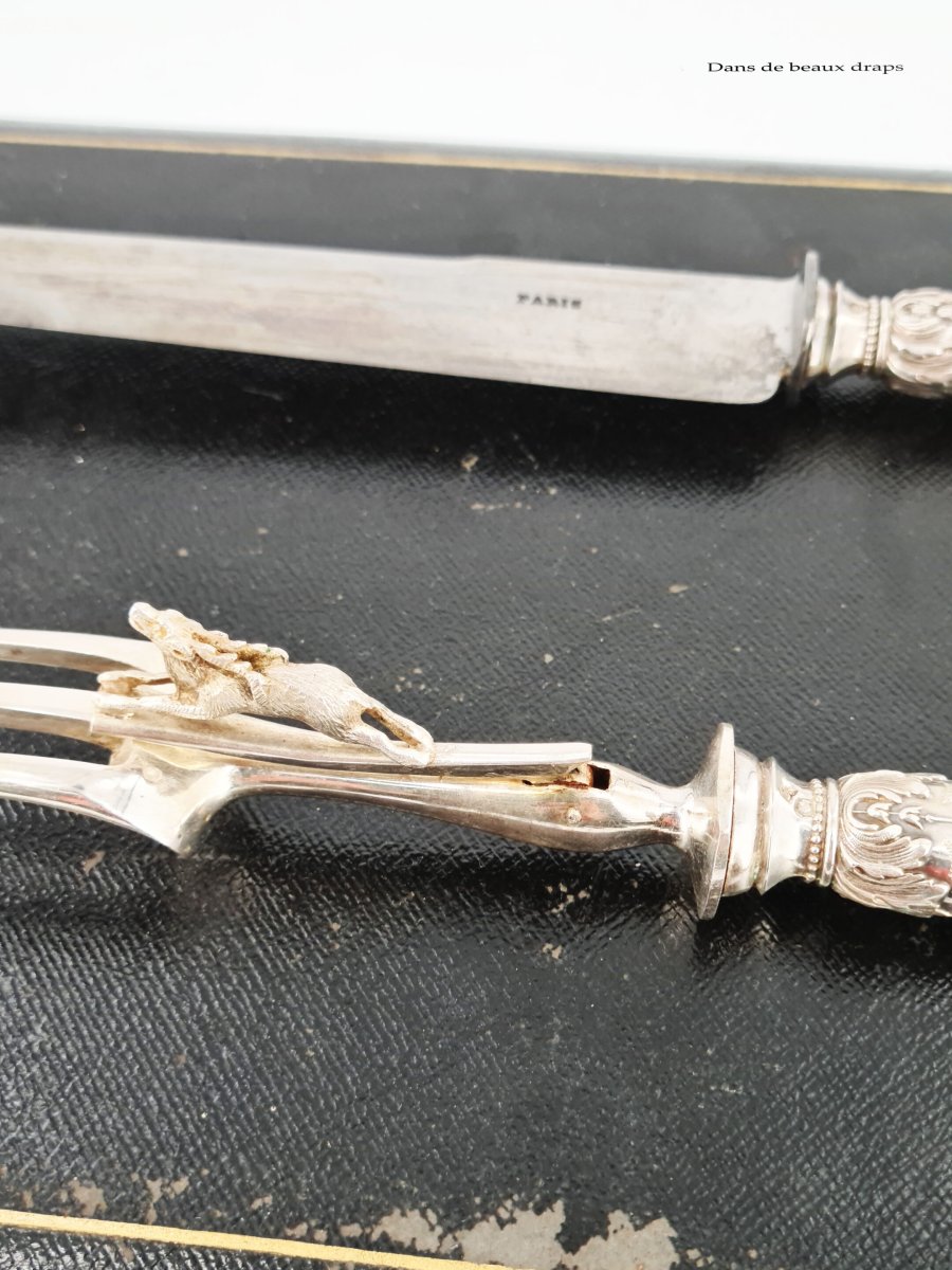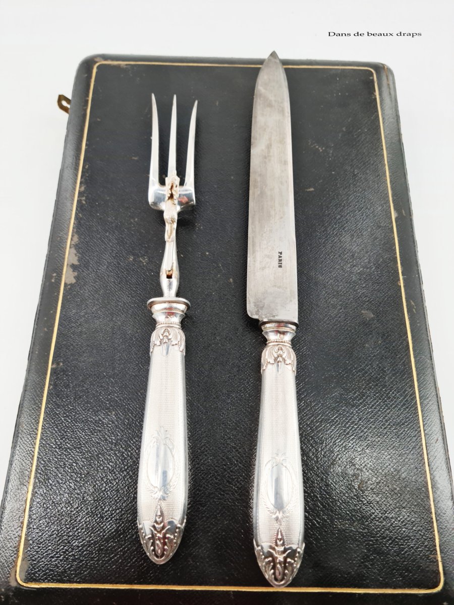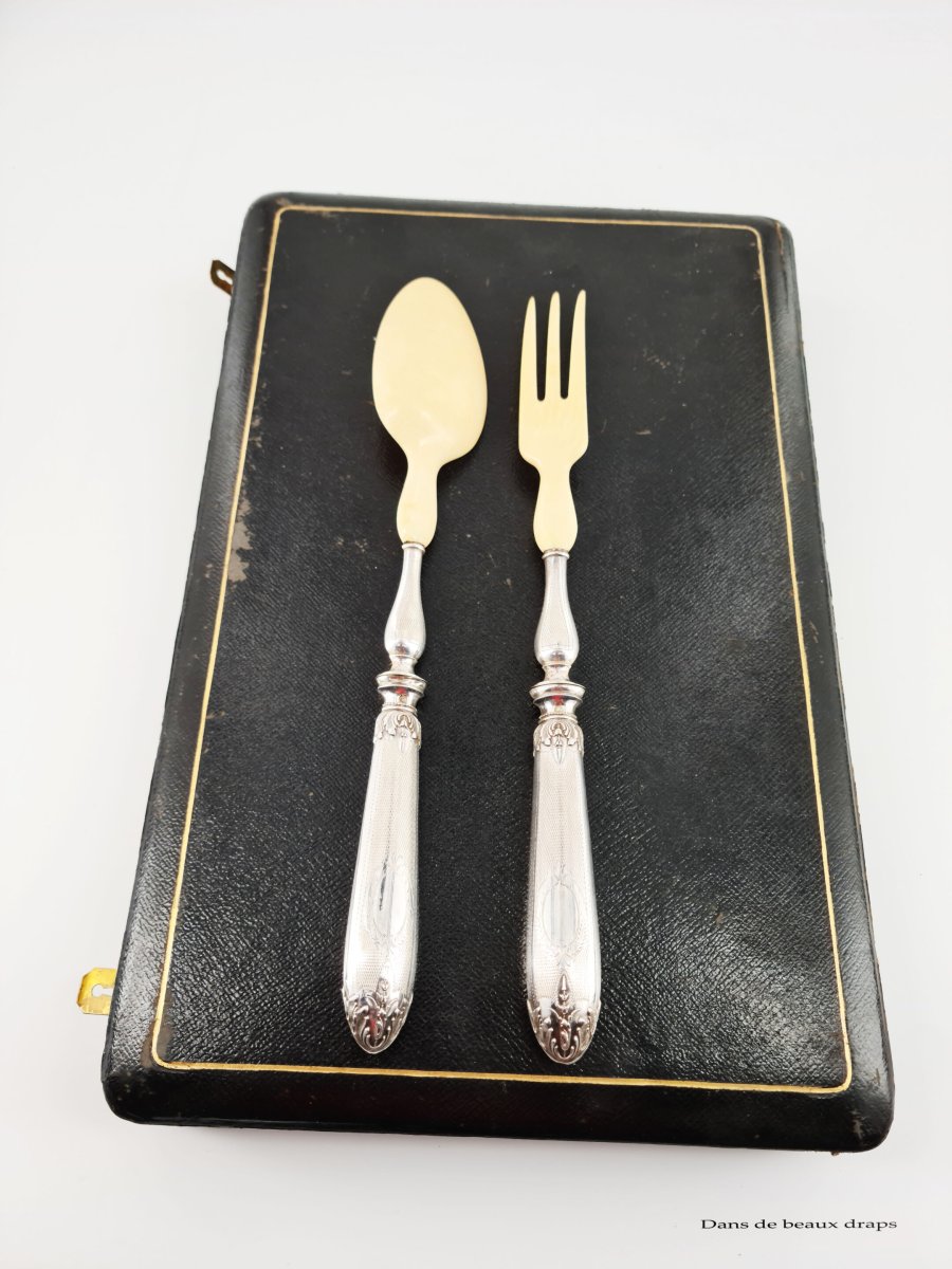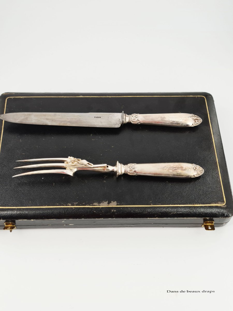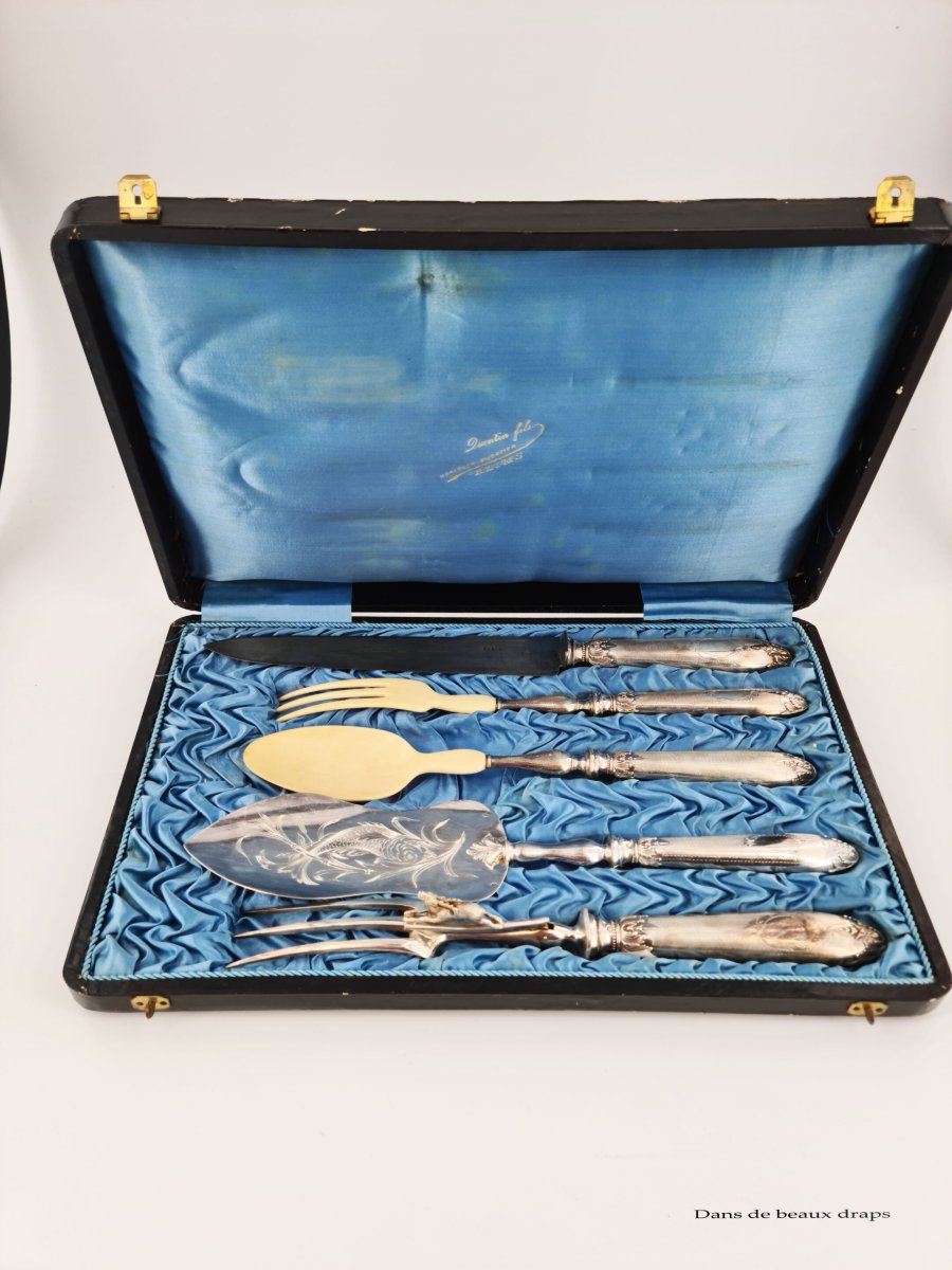 Ensemble de couverts à servir en argent massif dans leur coffret,début XX ème.