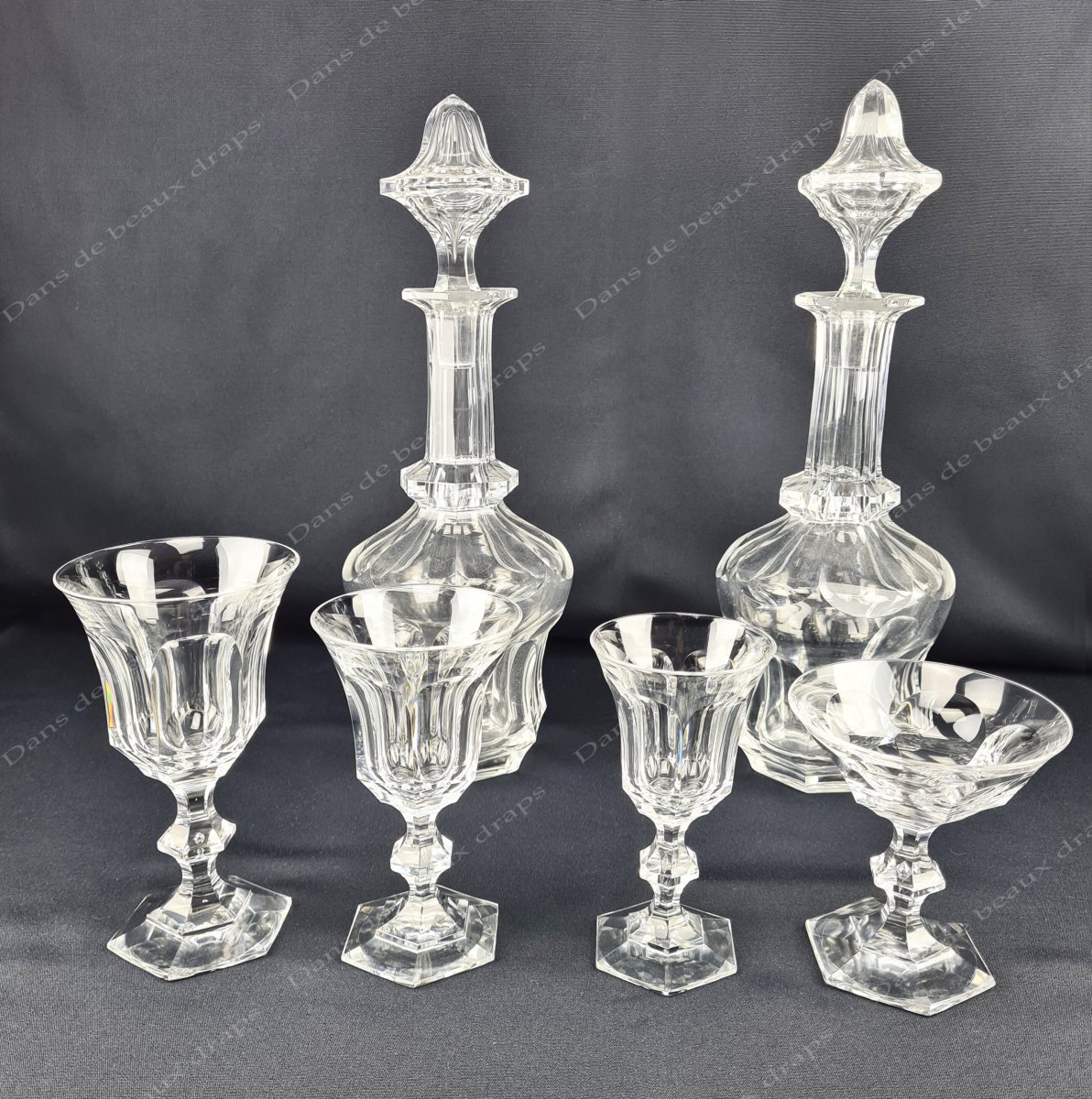 Modèle emblématique, le service Metternich est référencé dans les catalogues de la célèbre cristallerie Belge en 1843 et 1847 (Source : B. Lognard-Poncin, historienne, rédactrice du catalogue de l’exposition « les Arts de la table en Val Saint Lambert »).