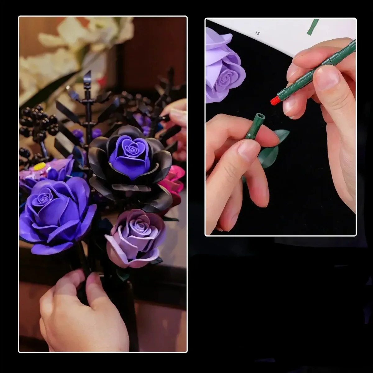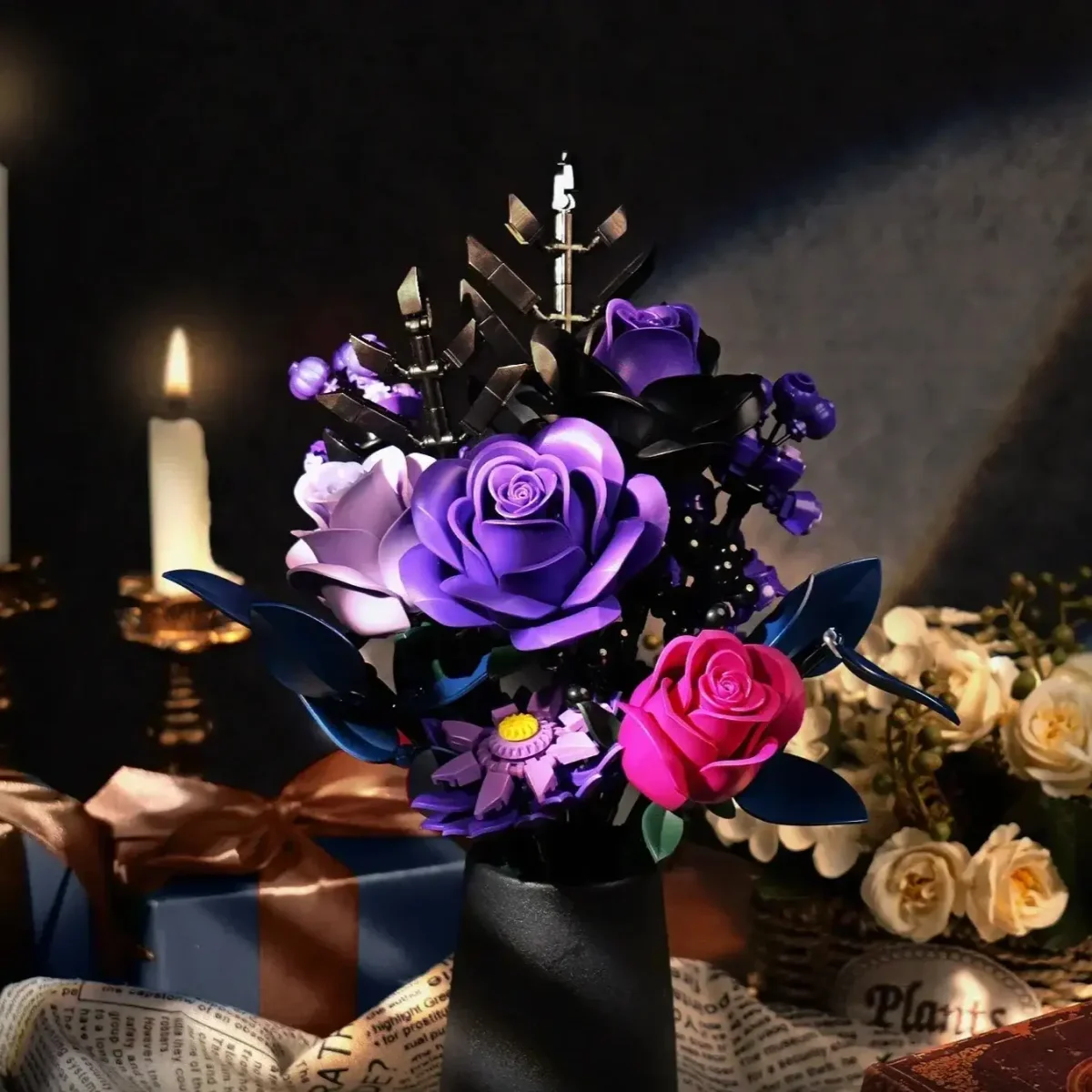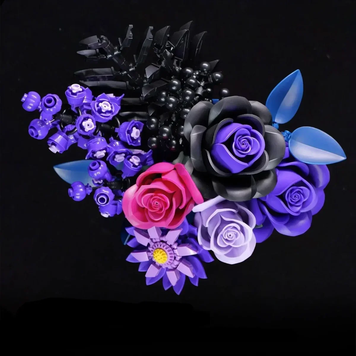 Créez un bouquet éternel avec notre set de fleurs en briques roses et violettes (736 pièces) !