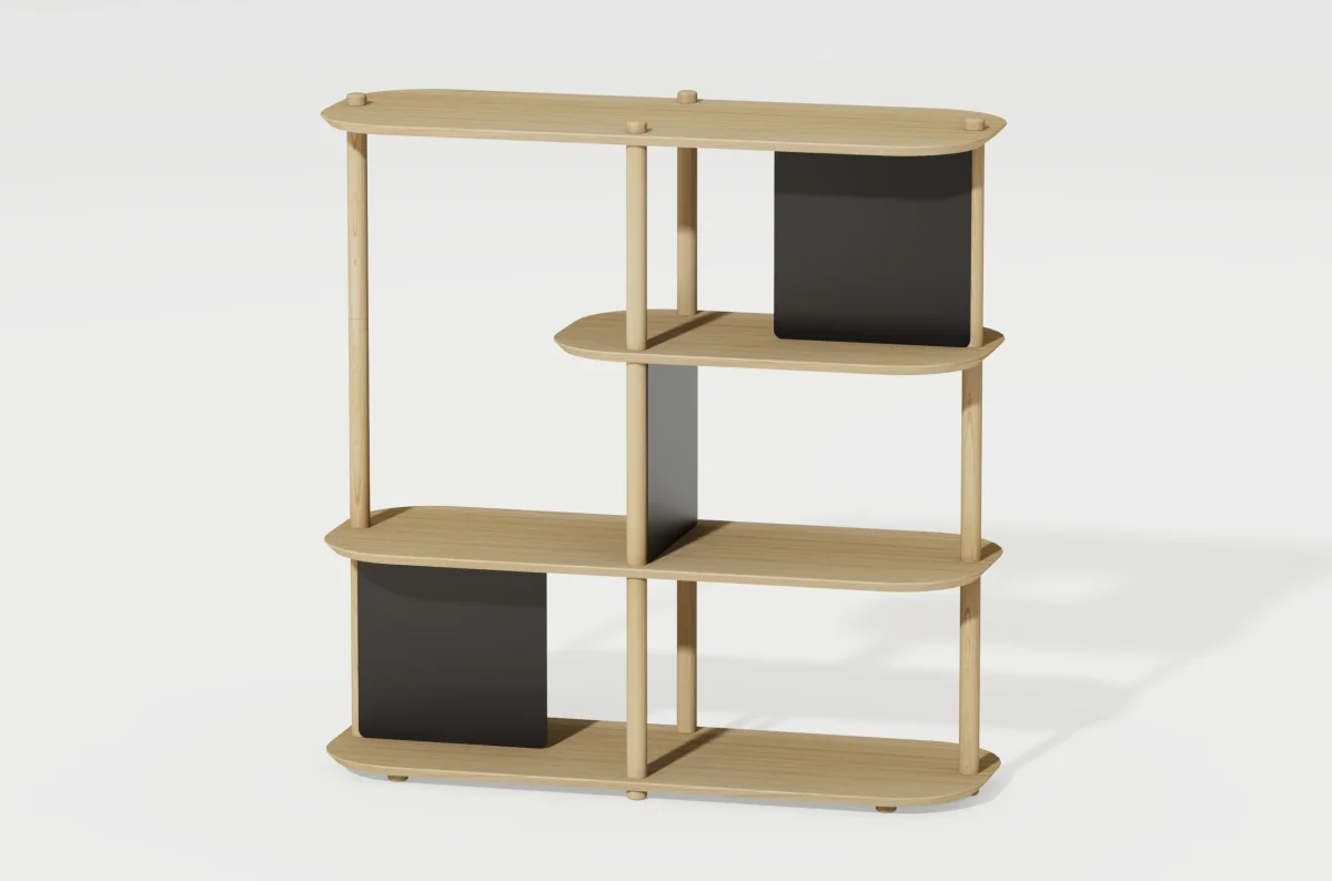 La grande étagère 4 niveaux by Toscane est une grande étagère en bois et métal sur 4 niveaux. Cette étagère comprend trois séparateurs à placer en longueur ou en largeur sur deux ou trois niveaux pour poser vos livres et ajouter une touche colorée à votre intérieur