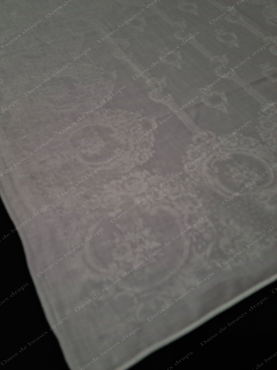 Jolie série de 12 serviettes de table en damassé de lin sans monogramme.