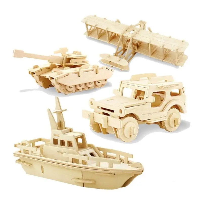 Ce casse-tête en bois permet d’assembler différents véhicules militaires (chars, avions, bateaux, véhicules tout-terrain…). Les pièces s’emboîtent facilement et peuvent être montées de plusieurs façons, offrant une liberté totale de création.