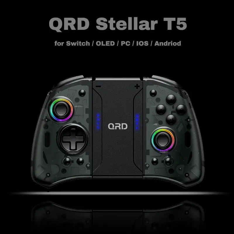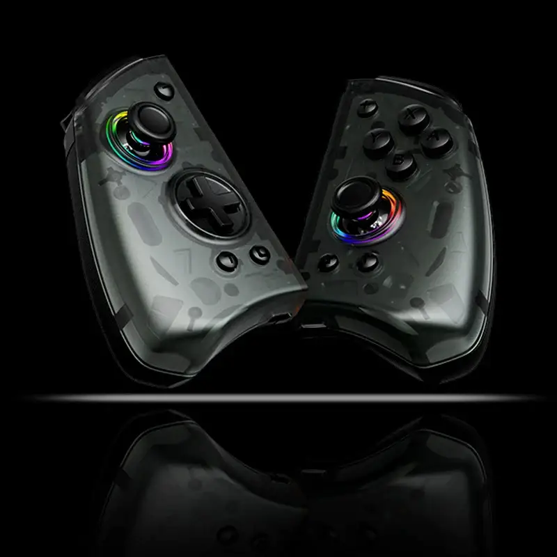 Conception de contrôleur sans fil avec commutateur QRD avec 8 effets de lumière différents (7 couleurs différentes de lumière led et 1 lumière arc-en-ciel). Il y a 3 modes d’éclairage différents, vous pouvez également régler les lumières en mode cycle automatique et régler la luminosité différente selon vos préférences, pour profiter pleinement de la meilleure expérience de jeu.