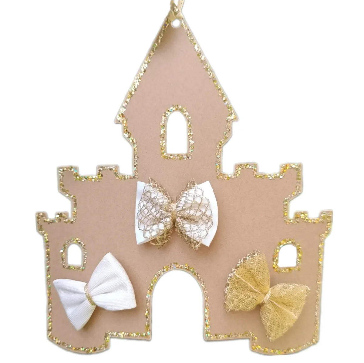 Lot de 3 barrettes doré sur leur joli packaging château pailleté.