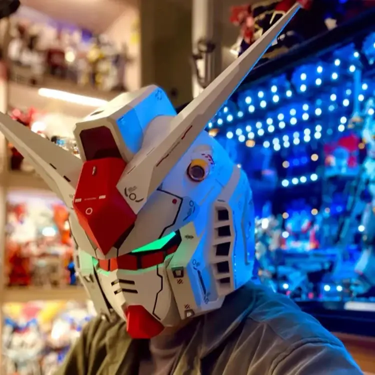 - Éclairage LED impressionnant : Les yeux et les écrans avant et arrière s’illuminent pour un effet visuel saisissant, reproduisant l’apparence du casque tel qu’il apparaît dans l’anime.