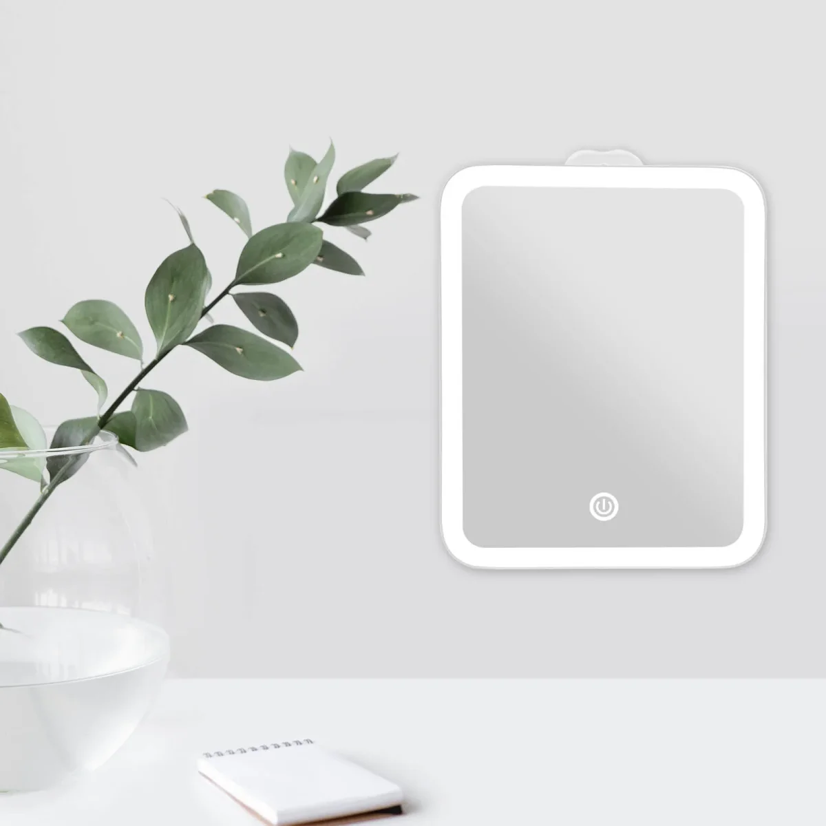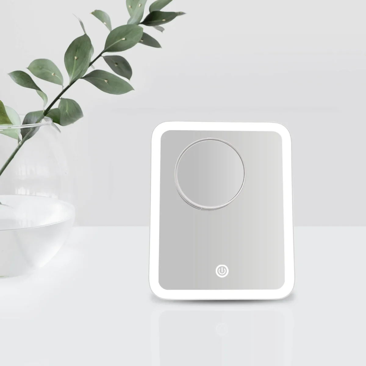 - Luminosité réglable de la lumière blanche froide : La luminosité de la lumière peut être réglée à l’aide du bouton tactile situé dans le au milieu du bas du miroir, afin que vous puissiez éclairer clairement votre visage dans n’importe quel environnement clair ou sombre.