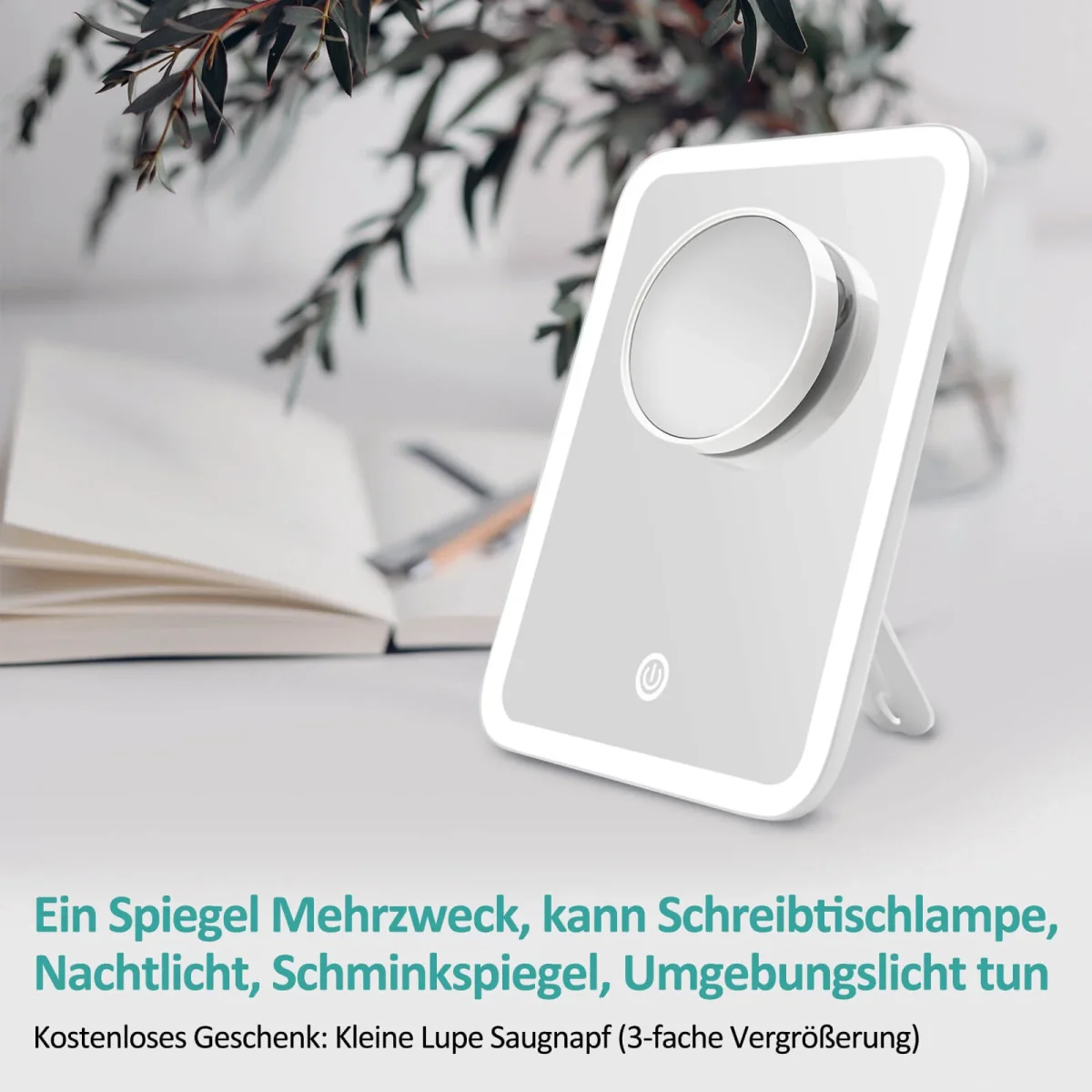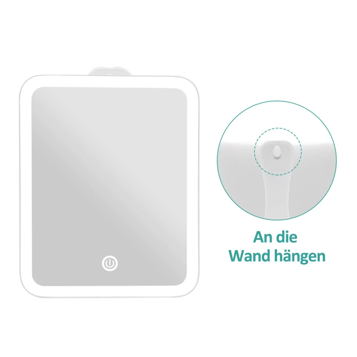 - Description de l’article : Le miroir cosmétique rectangulaire a une taille de 181×232 mm. Le diamètre du miroir grossissant 3x supplémentaire est de 88 mm. Le support arrière peut pivoter à 180 degrés et le miroir peut être placé verticalement ou horizontalement. Il peut également être accroché au mur. La longueur du cable USB est de 100 cm.