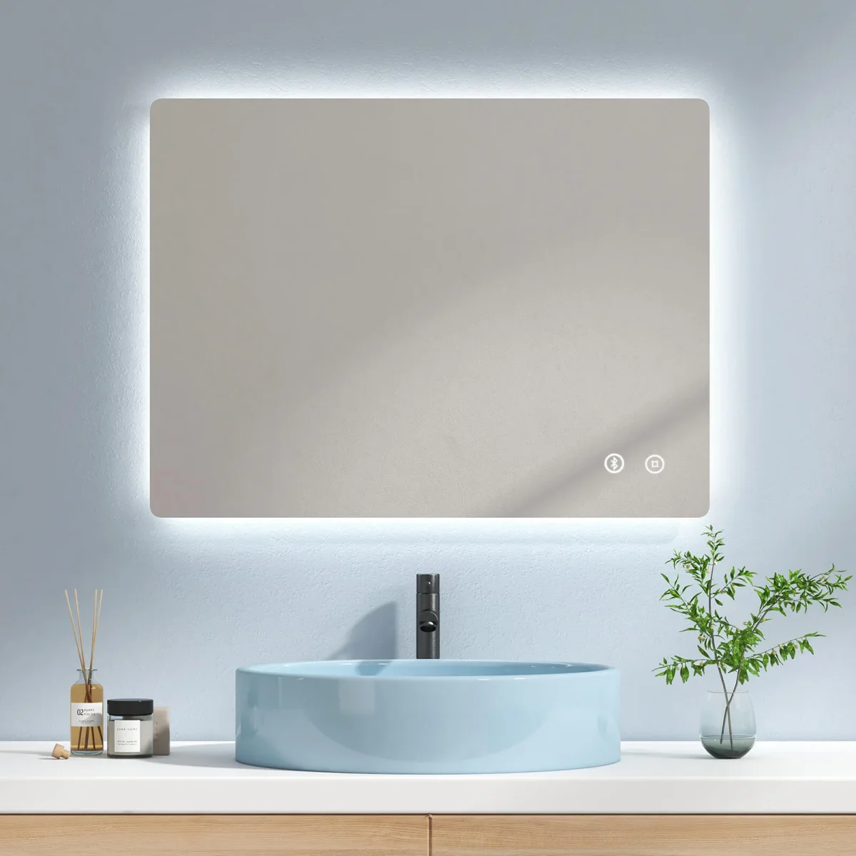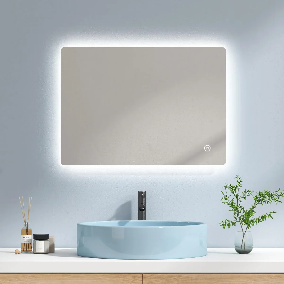 - Deux couleurs de lumière : blanc froid et lumière chaud . En appuyant légèrement sur l’interrupteur mécanique, vous pouvez facilement basculer entre les différentes couleurs de lumière. Notre miroir de salle de bains répond non seulement à vos différents besoins, mais vous aide également à créer l’ambiance d’éclairage la plus adaptée à vos besoins.