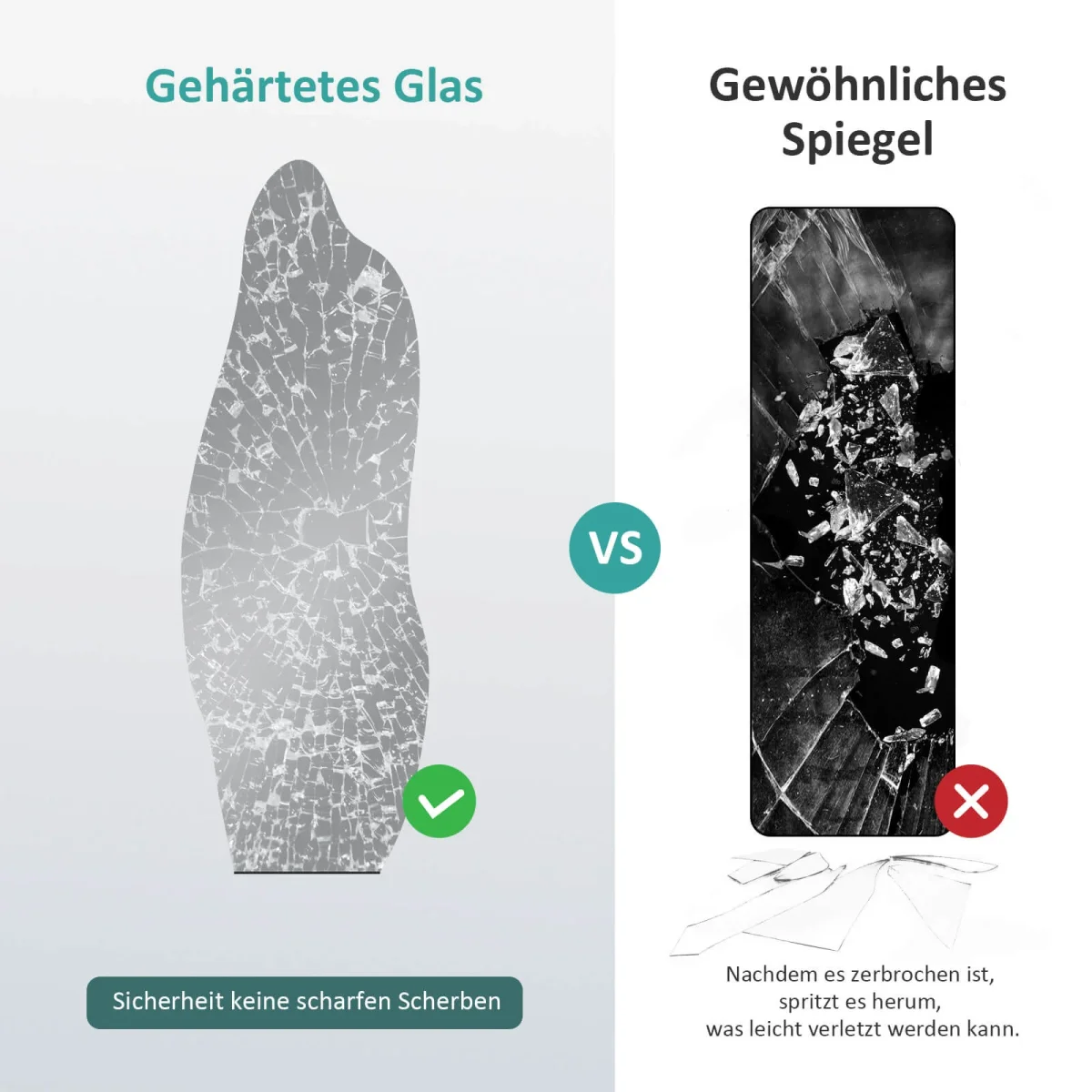 - Verre trempé : Surface du miroir en verre trempé écologique renforcé de 5 mm avec une grande clarté.