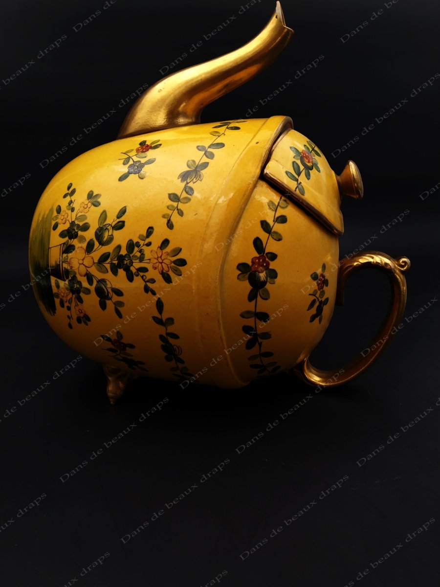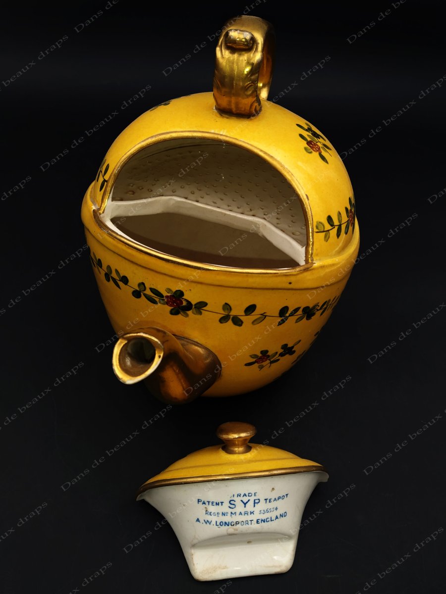 Originale théière en porcelaine anglaise sur pied.