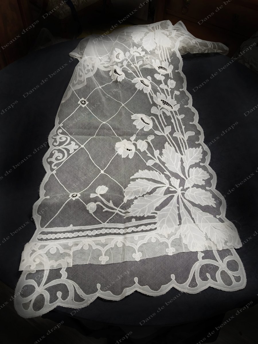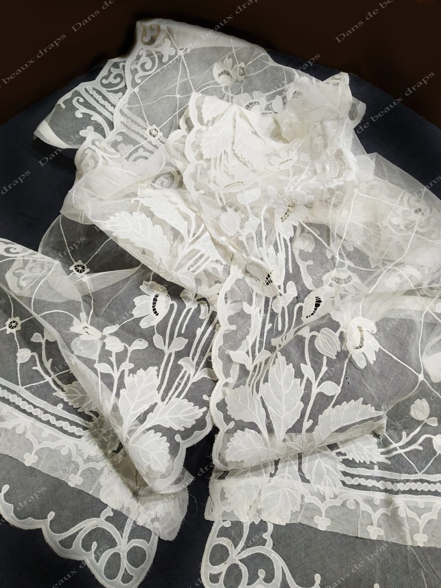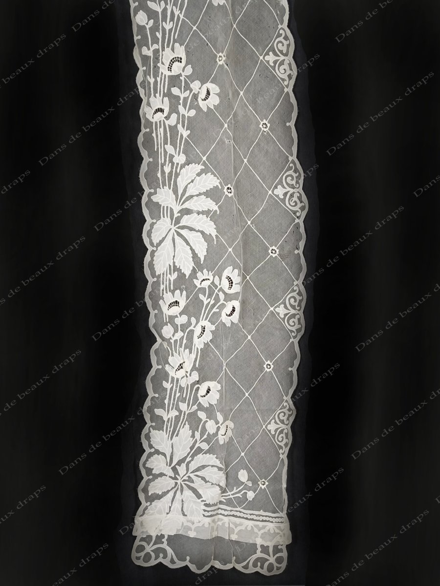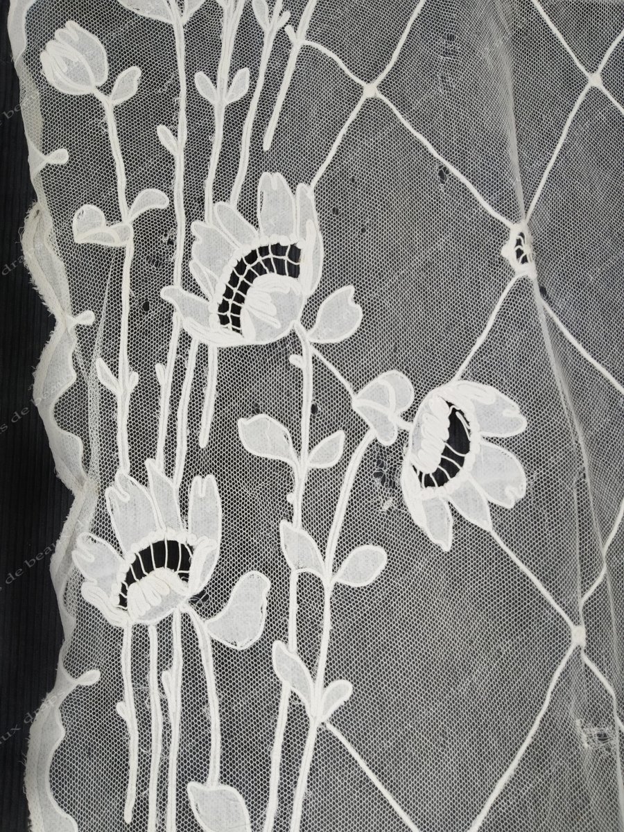 Paire de panneaux brodés sur tulle à décor floral,époque Napoléon 3.