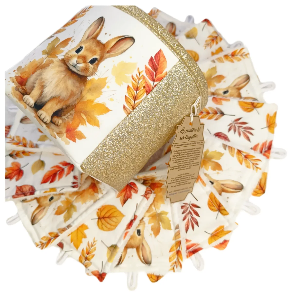 Lot de 15 lingettes lavables avec la panière assortie collection Fall Gold
