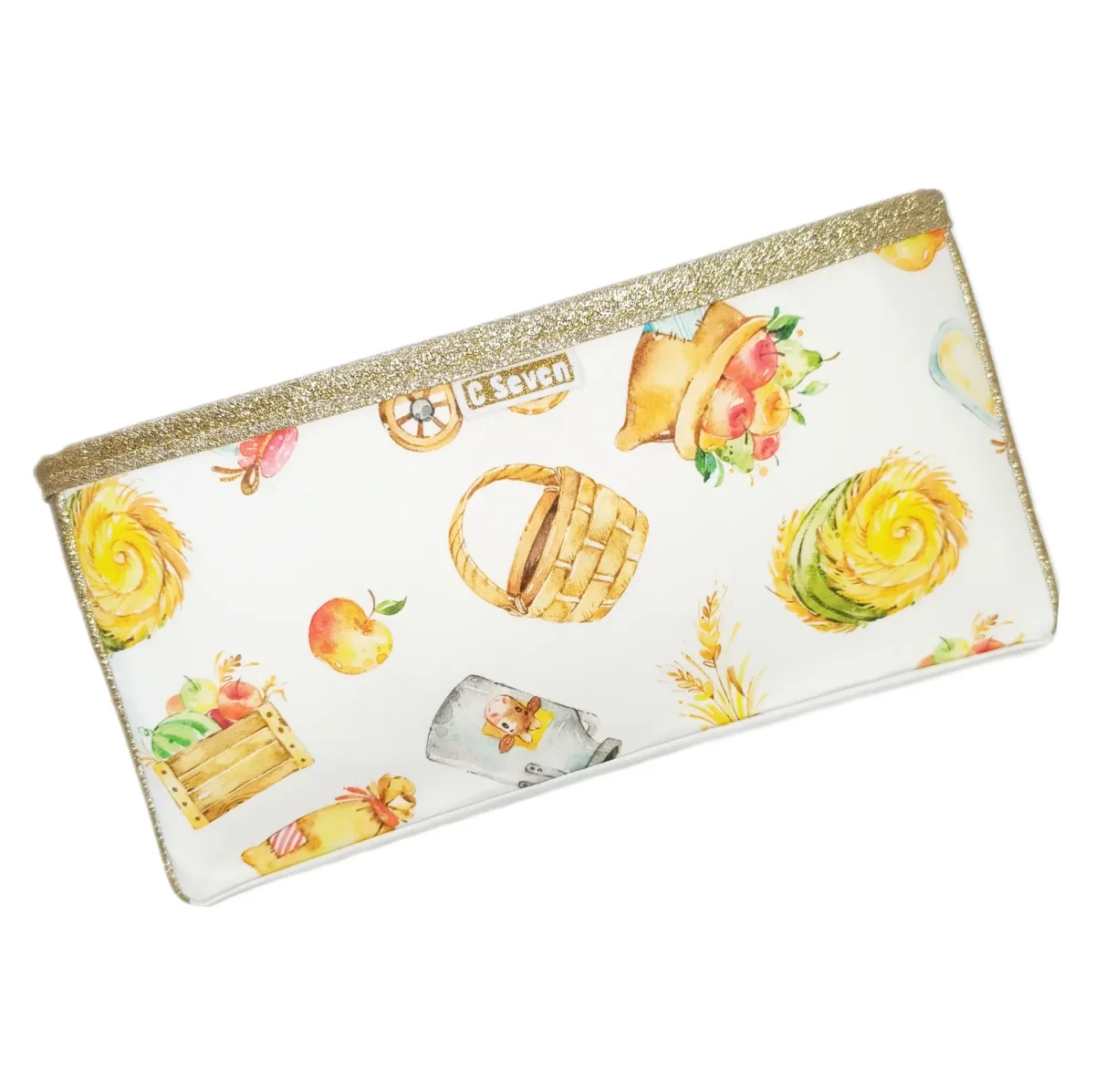 Elle est créé avec le tissu secondaire (ferme) de la collection Farm Gold et le même tissu pailleté (doré) que la panière à lingettes.
