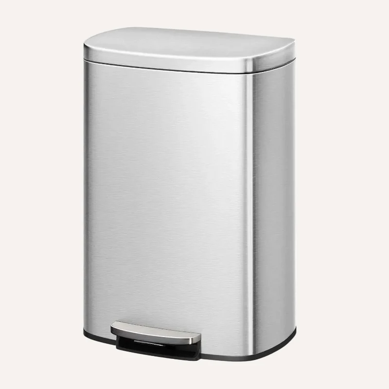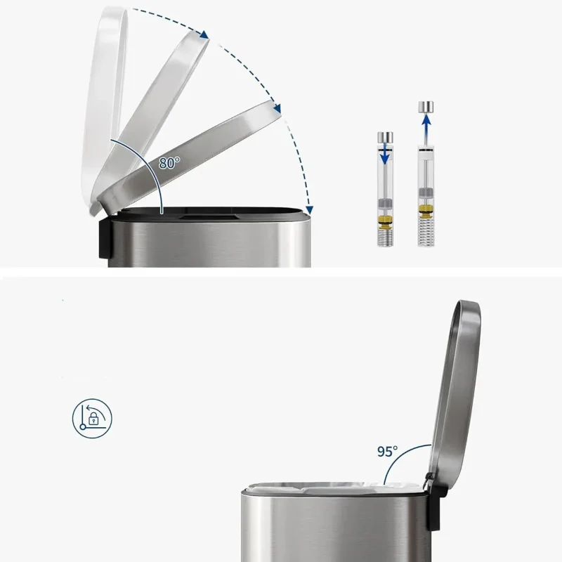 La pédale robuste permet une ouverture mains libres confortable lors de la préparation des repas, un fonctionnement apprécié sur des modèles comparables comme la poubelle tri sélectif en acier 45L. La fermeture douce limite les bruits et aide à contenir les odeurs. Le seau intérieur amovible simplifie le changement du sac, tandis que les pieds antidérapants assurent une bonne stabilité, même sur carrelage ou parquet.