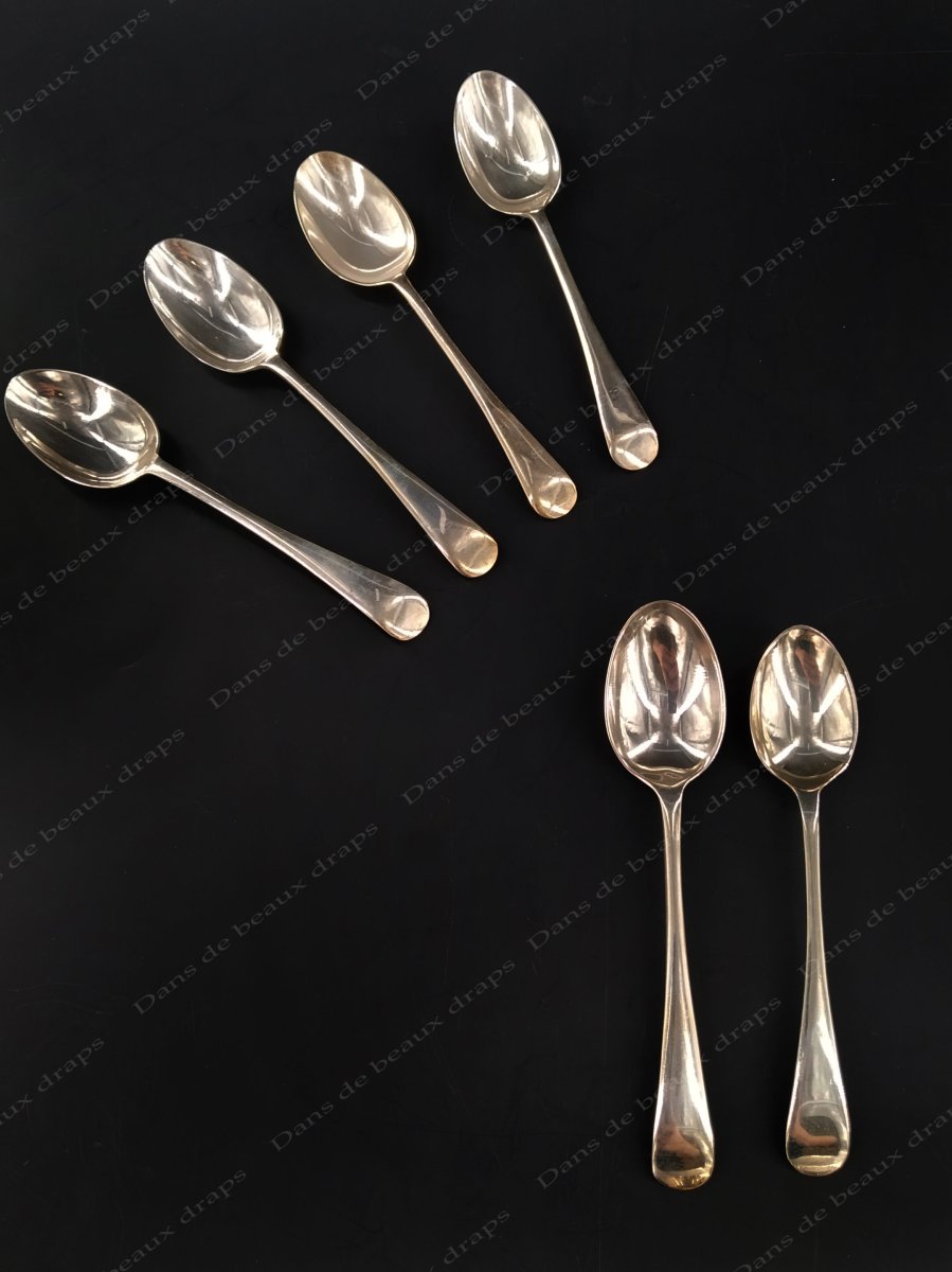 A noter: 1 cuillère est légèrement plus petite (12,2 cm),1 léger enfoncement sur 2 coquetiers.