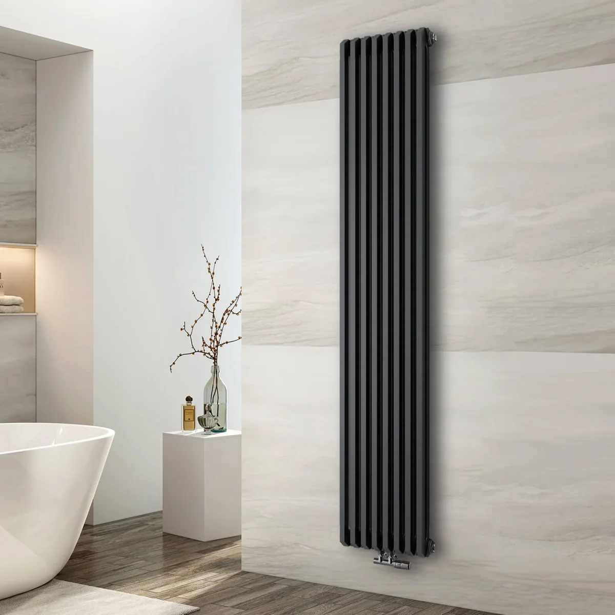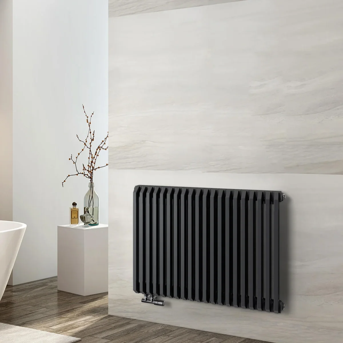 - En ce qui concerne les options de couleurs, notre radiateur est disponible en deux superbes variantes : blanc et anthracite. La version blanche dégage une sensation de pureté et de fraîcheur et crée une atmosphère lumineuse et aérée dans votre salle de bain. D’un autre côté, la couleur gris anthracite ajoute une touche dramatique et sophistiquée et fait une déclaration audacieuse dans votre espace. Quelle que soit la couleur que vous choisissez, les deux options sont conçues pour s’intégrer parfaitement au reste du décor de votre salle de bain, créant ainsi une apparence unifiée et visuellement attrayante. Améliorez votre salle de bain avec notre radiateur moderne et profitez à la fois de sa fonctionnalité et de son esthétique.