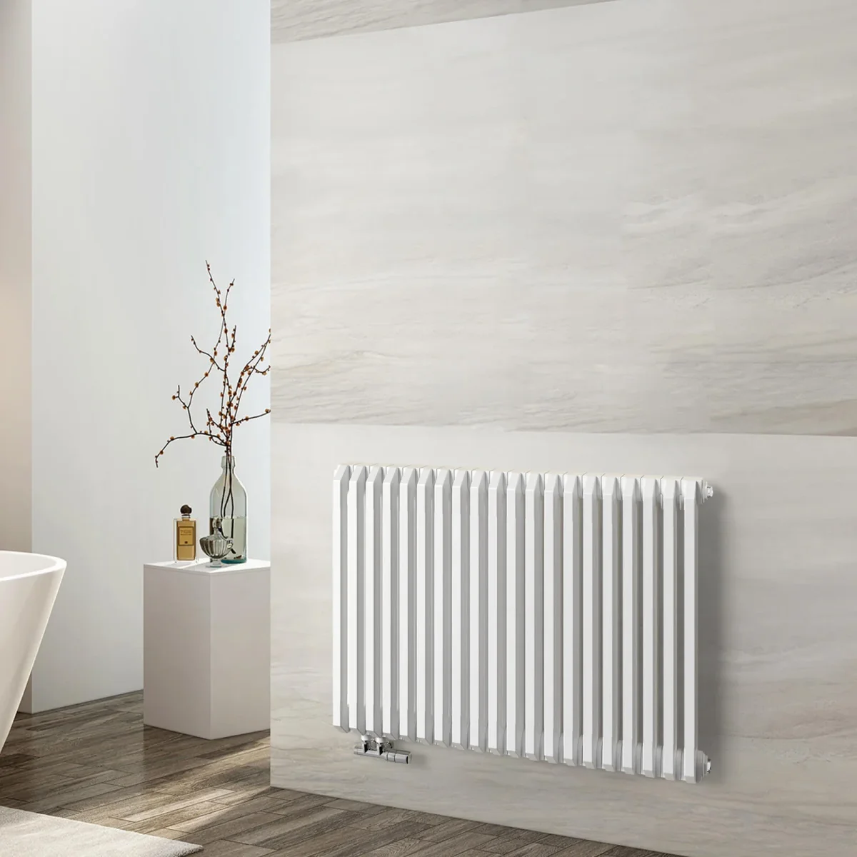 - À noter : les vannes ne sont pas incluses avec le radiateur et peuvent être commandées séparément.