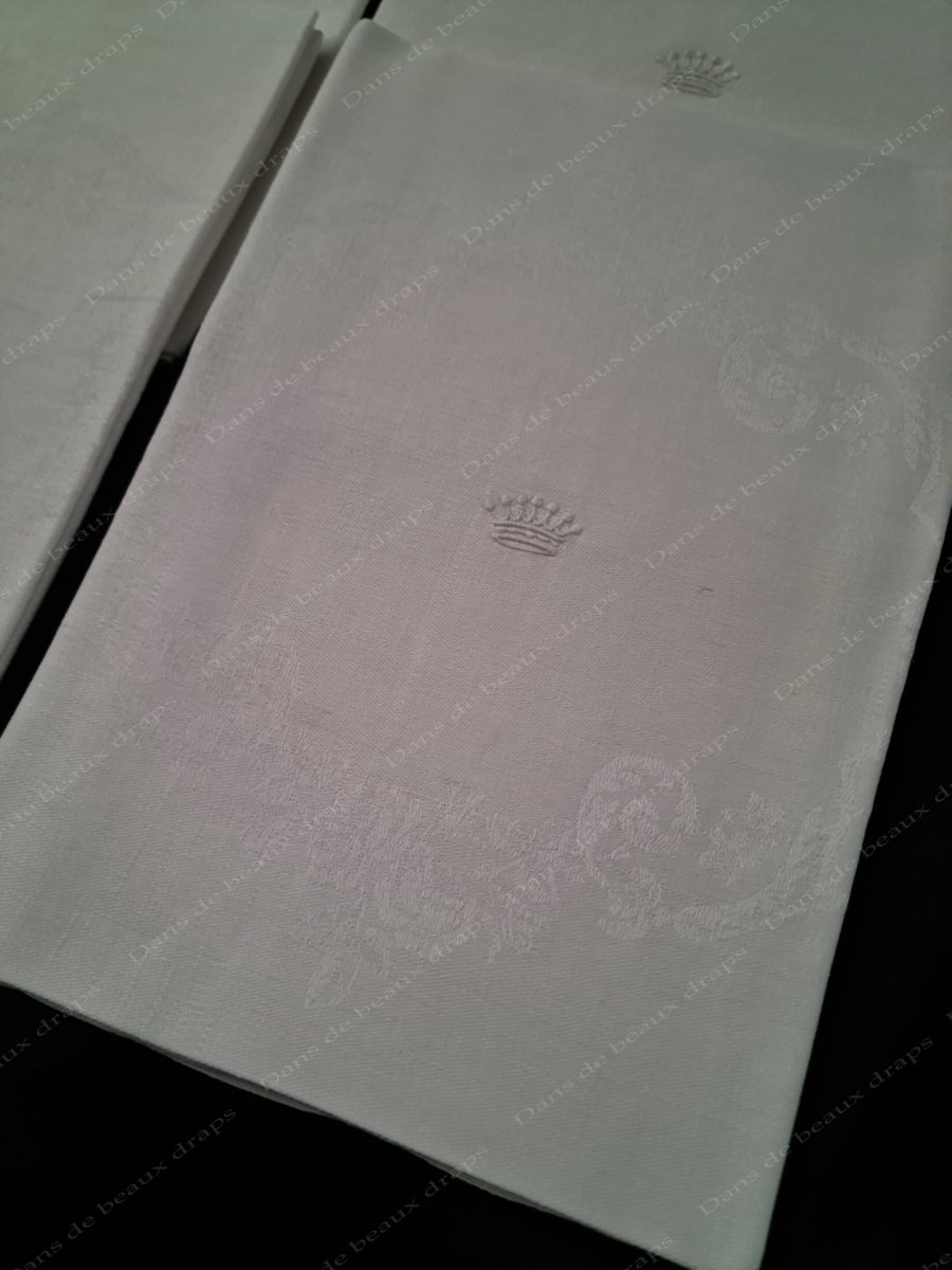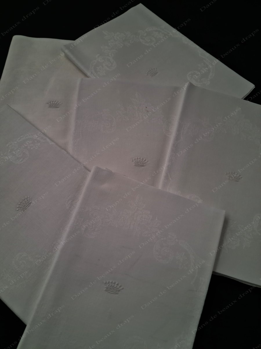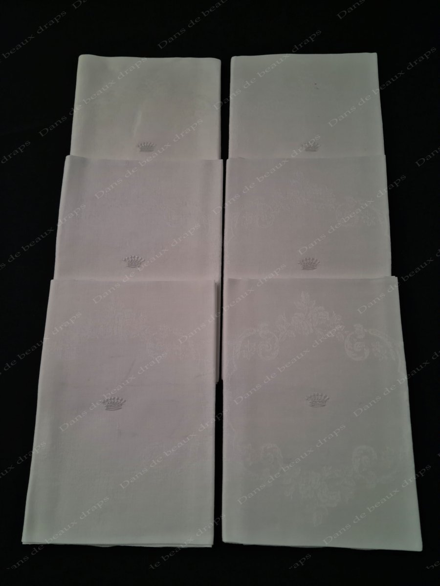 Suite de 6 serviettes de table en damassé de lin,couronne de baron.