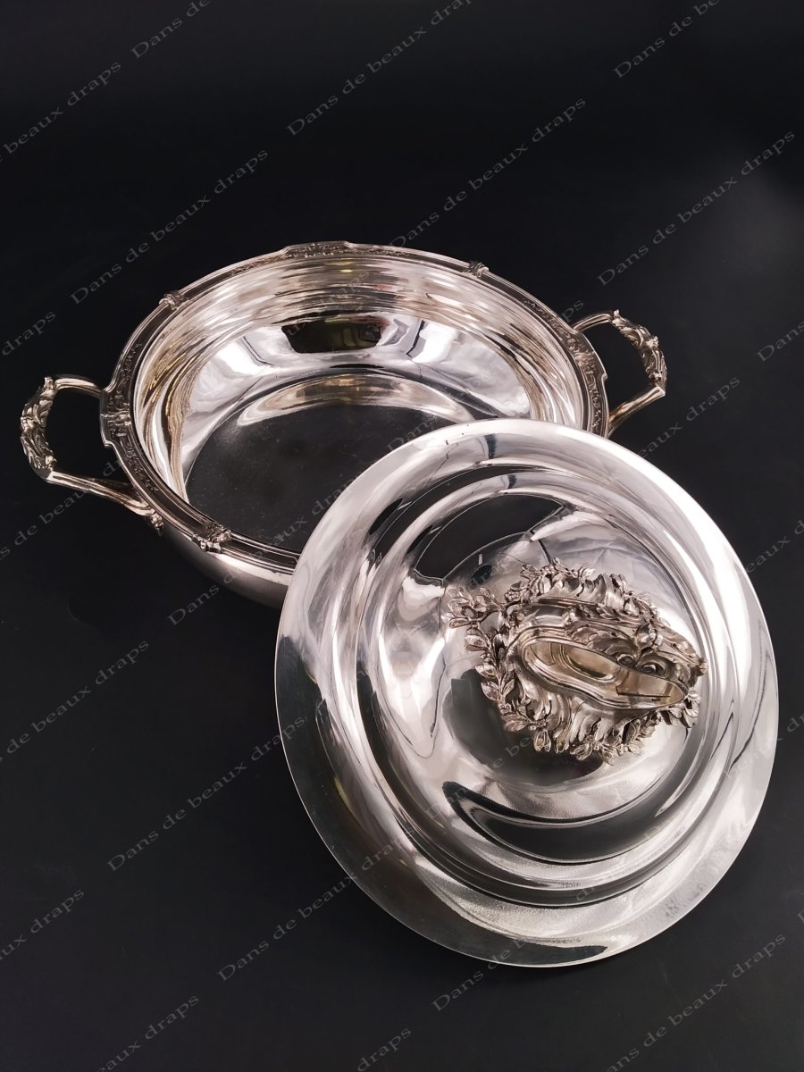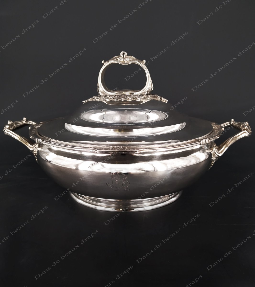 Superbe légumier en argent,poinçon mercure,monogramme LB,fin XIX ème.