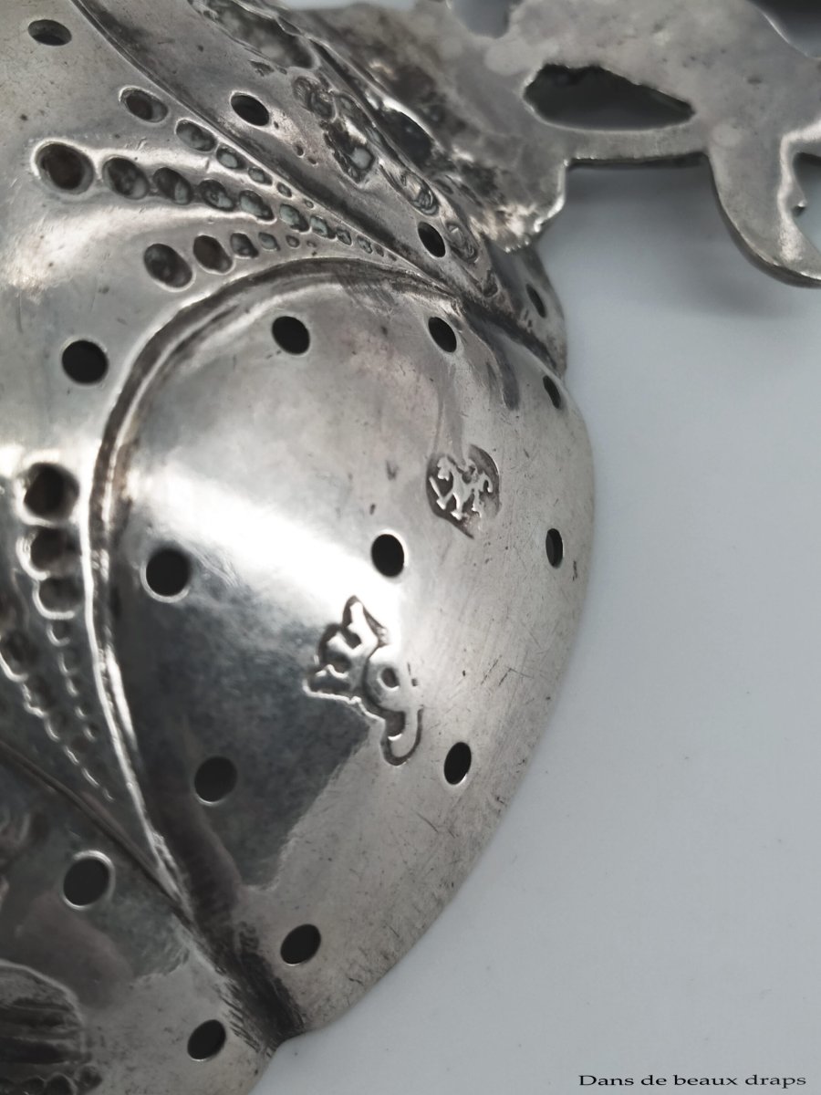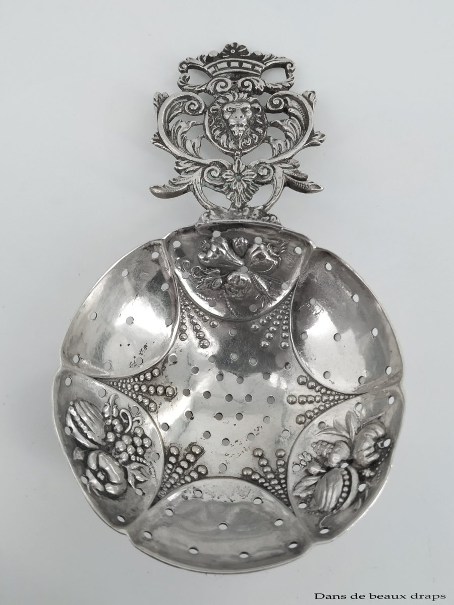 De forme ronde et profonde, riche décor ciselé de perles et grappes de fruits .