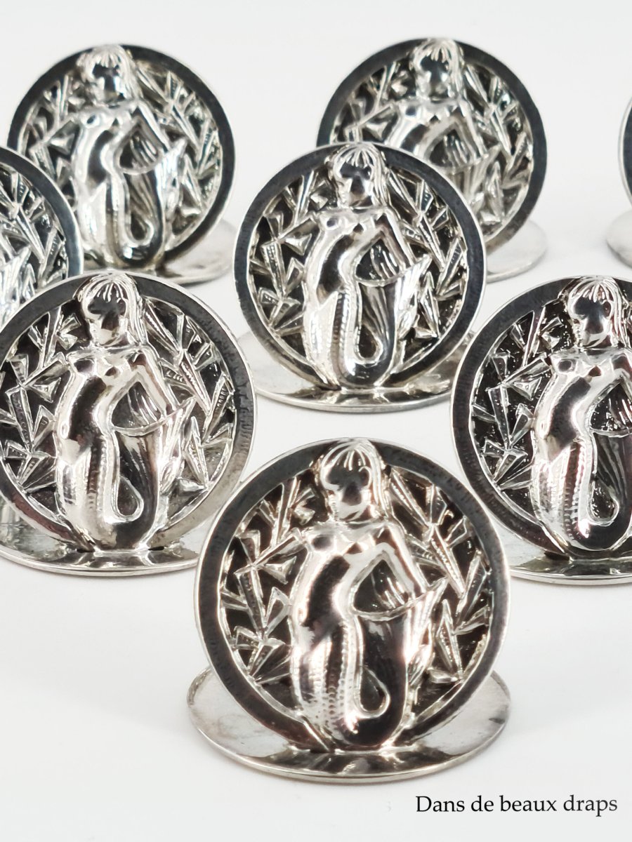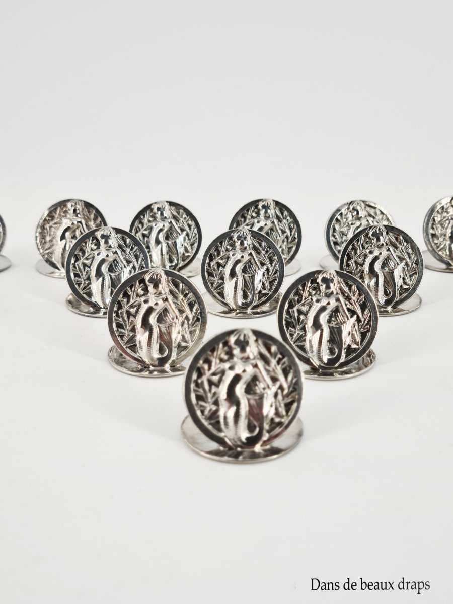 Superbe série de 10 marque place en métal argenté, époque art déco.