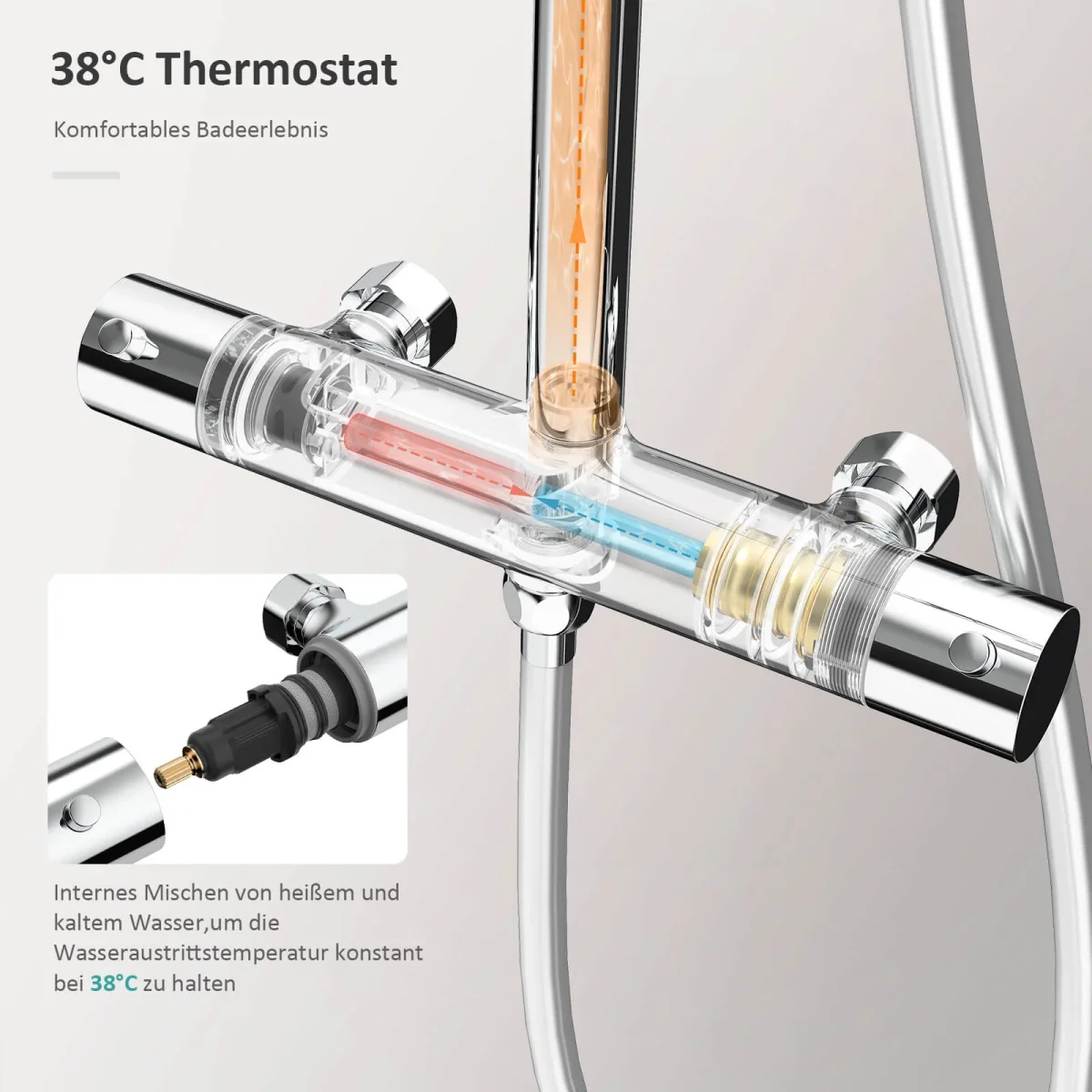 • Ensemble tout-en-un : Ce système de douche combine un thermostatique, une douchette à main et une douche de tête ronde et plate en métal de haute qualité dans un design moderne et assure une expérience de douche agréable.