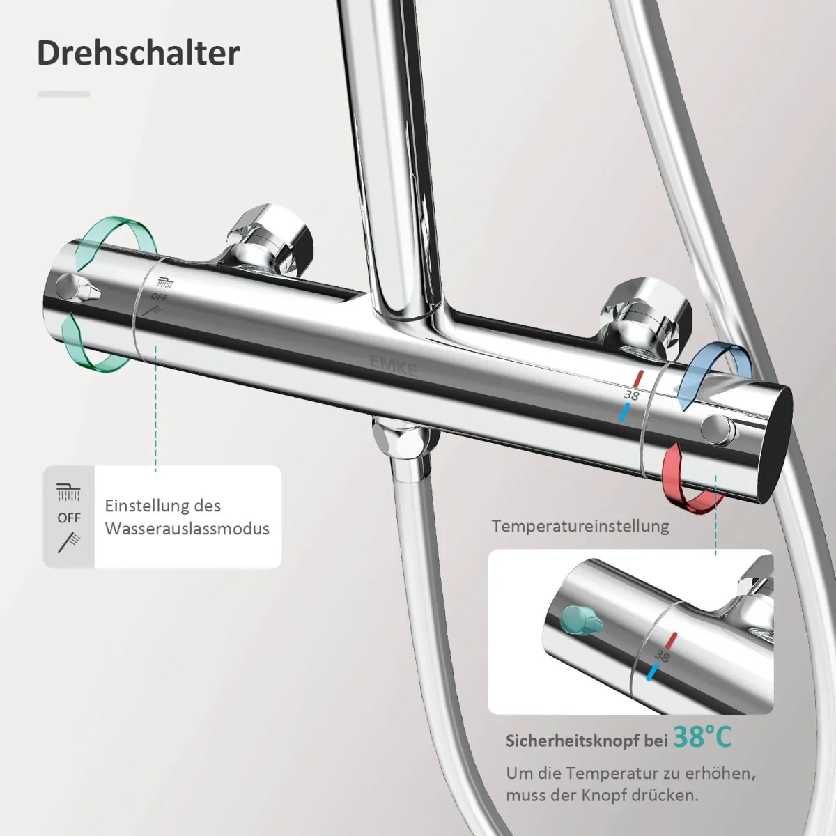 Système de douche EMKE « F07 » avec douche de tête ronde, thermostatique, chromé