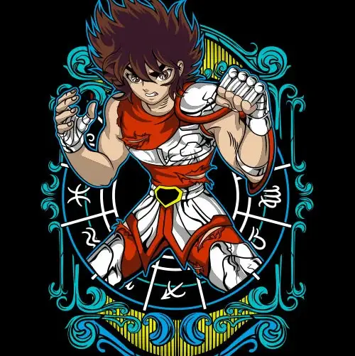 - Design emblématique : Illustration de Seiya, le héros des Chevaliers du Zodiaque.