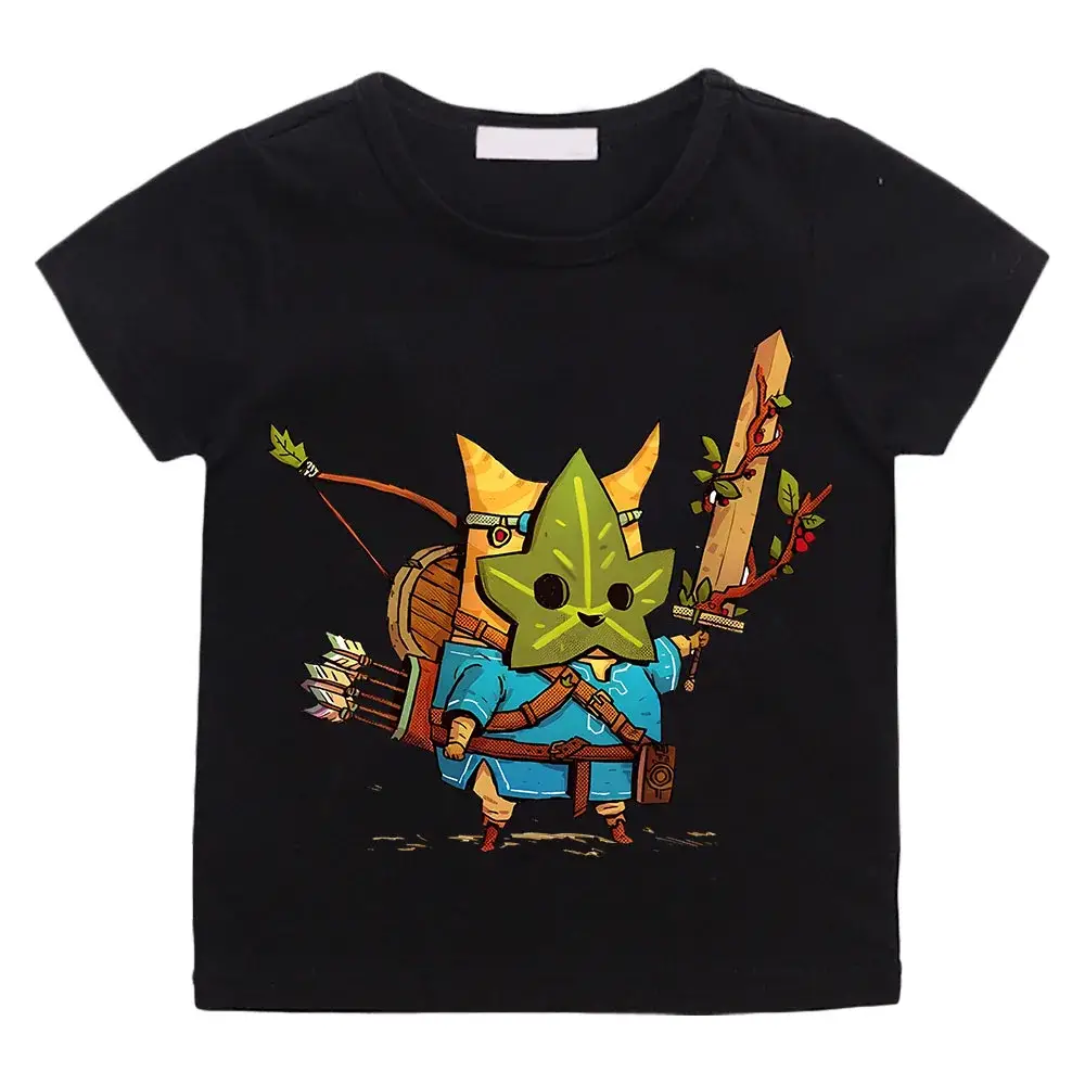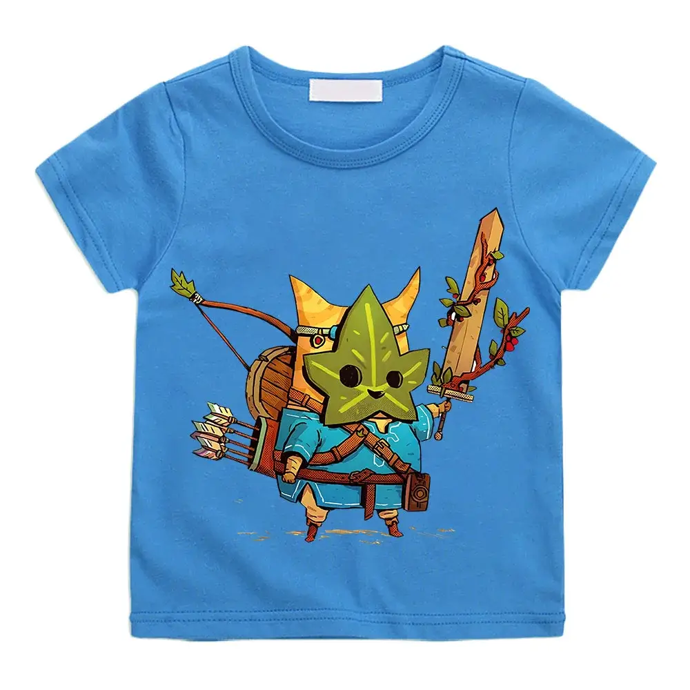 Inspiré des adorables Koroks de l’univers Zelda, ce t-shirt transporte les enfants dans un monde magique peuplé de créatures malicieuses et de nature enchantée.