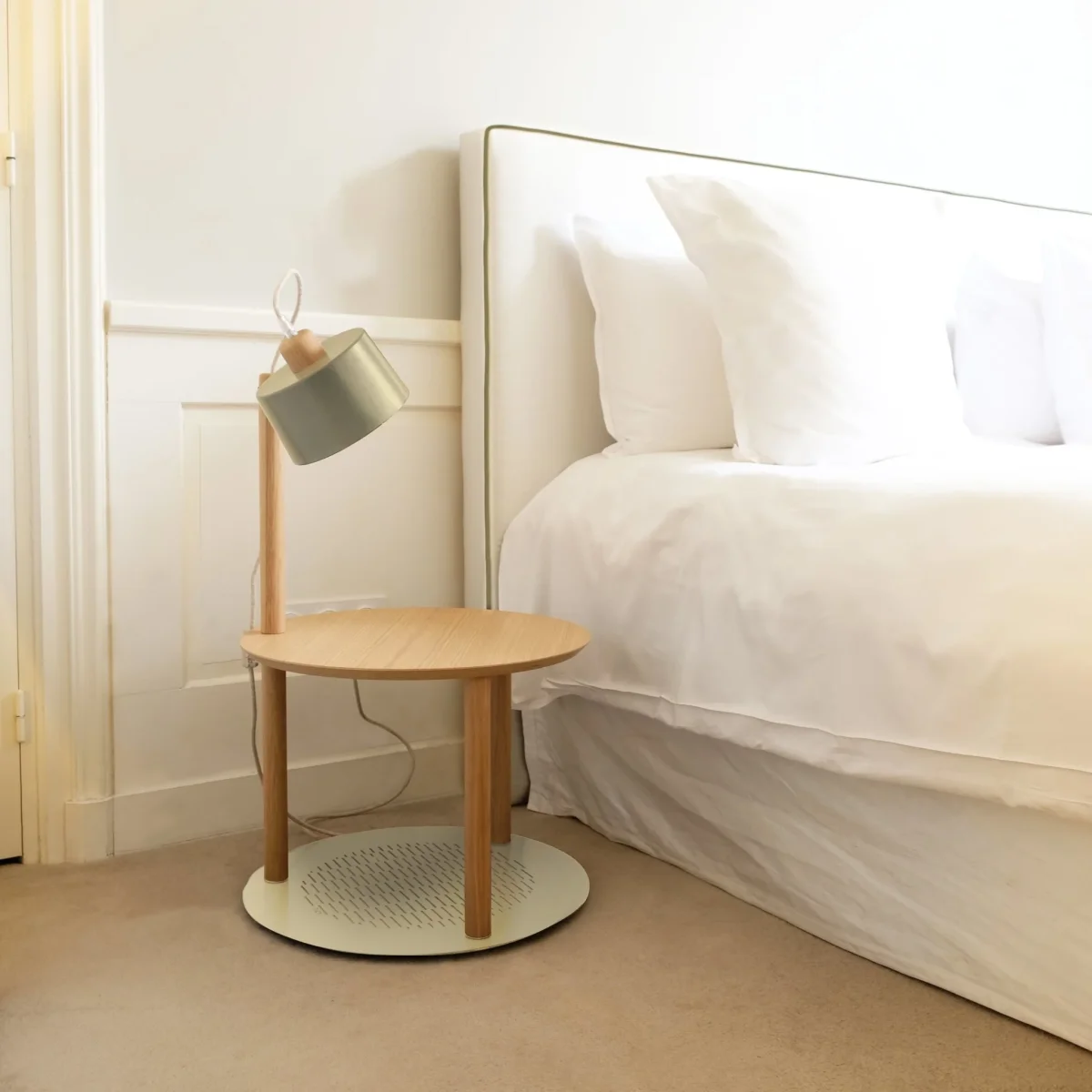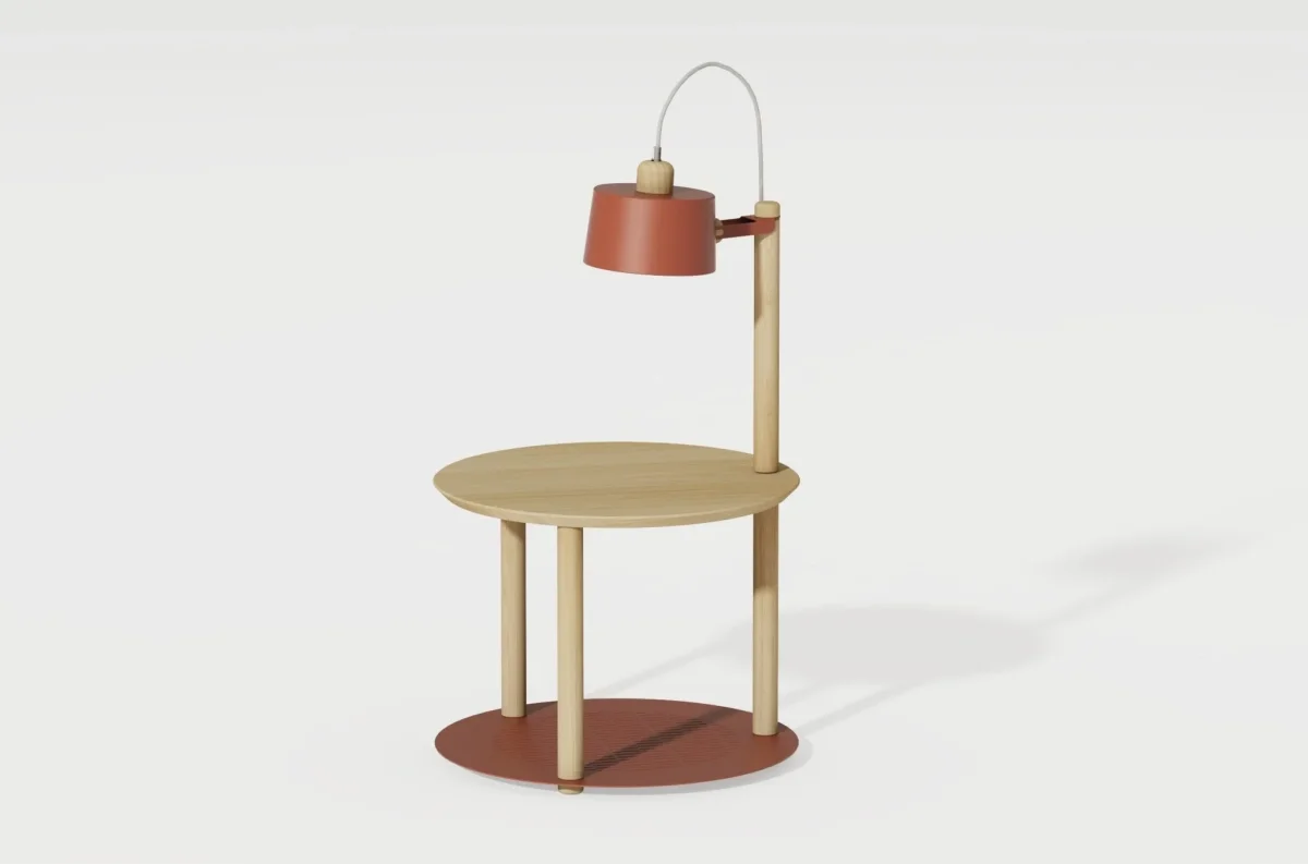 La table d’appoint & lampe by Charlotte a été créée pour associer praticité et design. Une table alliant métal made in France, pied en chêne massif et plateau en contreplaqué bouleau avec placage chêne. Cette table est idéale en table de chevet ou table d’appoint pour ranger vos livres, petites affaires. La lampe intégrée ajoute une dimension originale et pratique à cette table !
