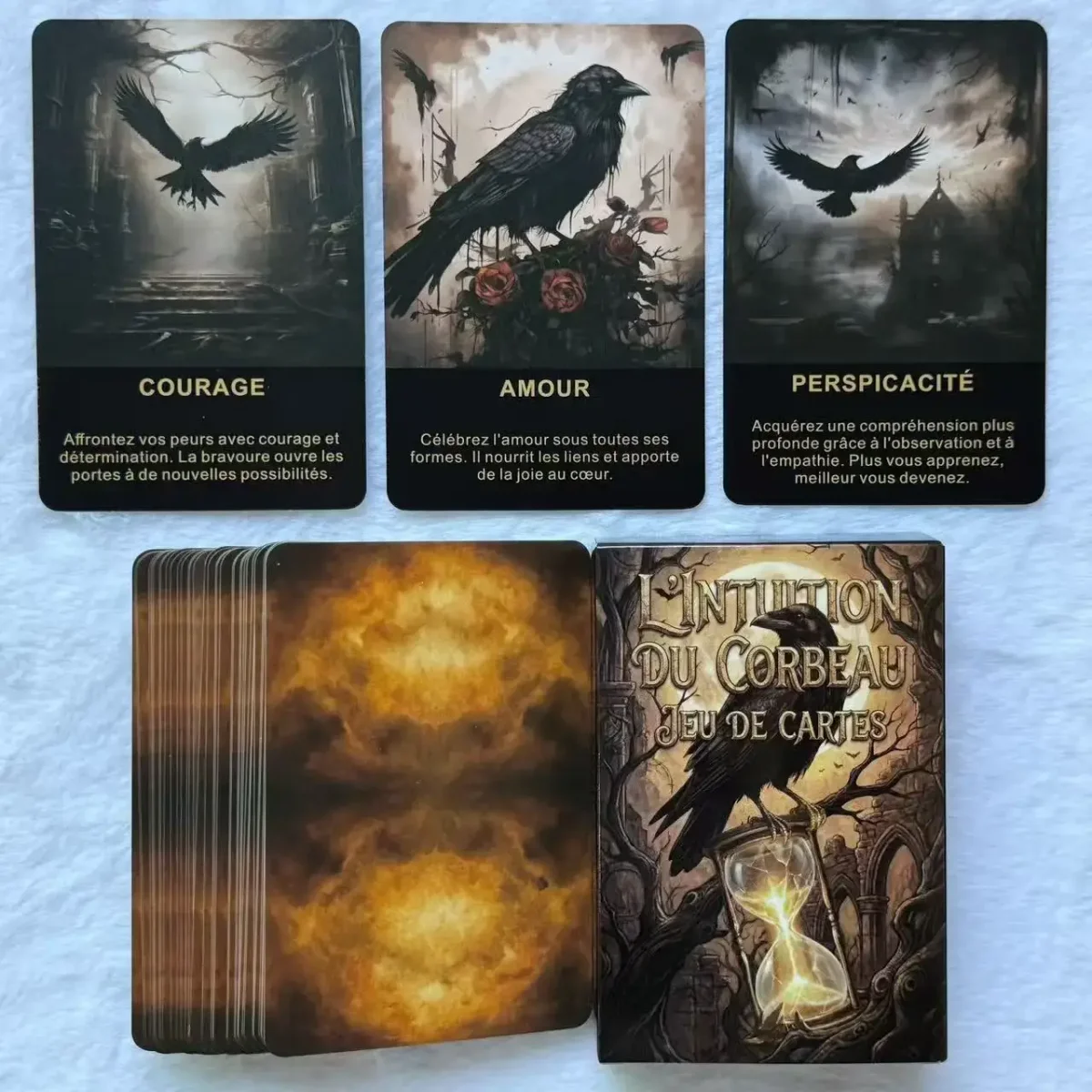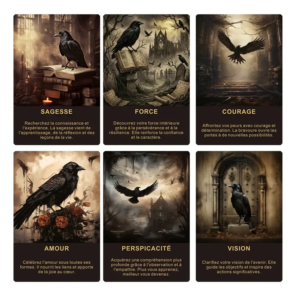 🖤 Tarot Français Intuition du Corbeau – 50 Cartes