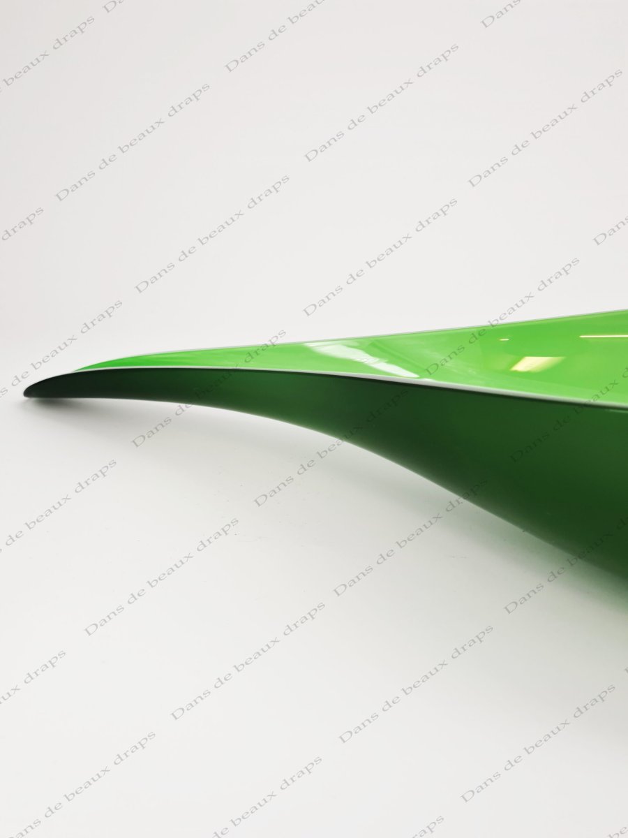 De couleur verte,bord noir,à l’imitation d’une feuille.